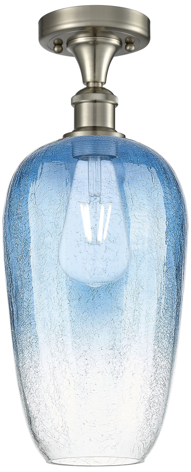 Ballston Brookhaven Flute 7"W Nickel Semi-Flush w/ Sapphire Shade