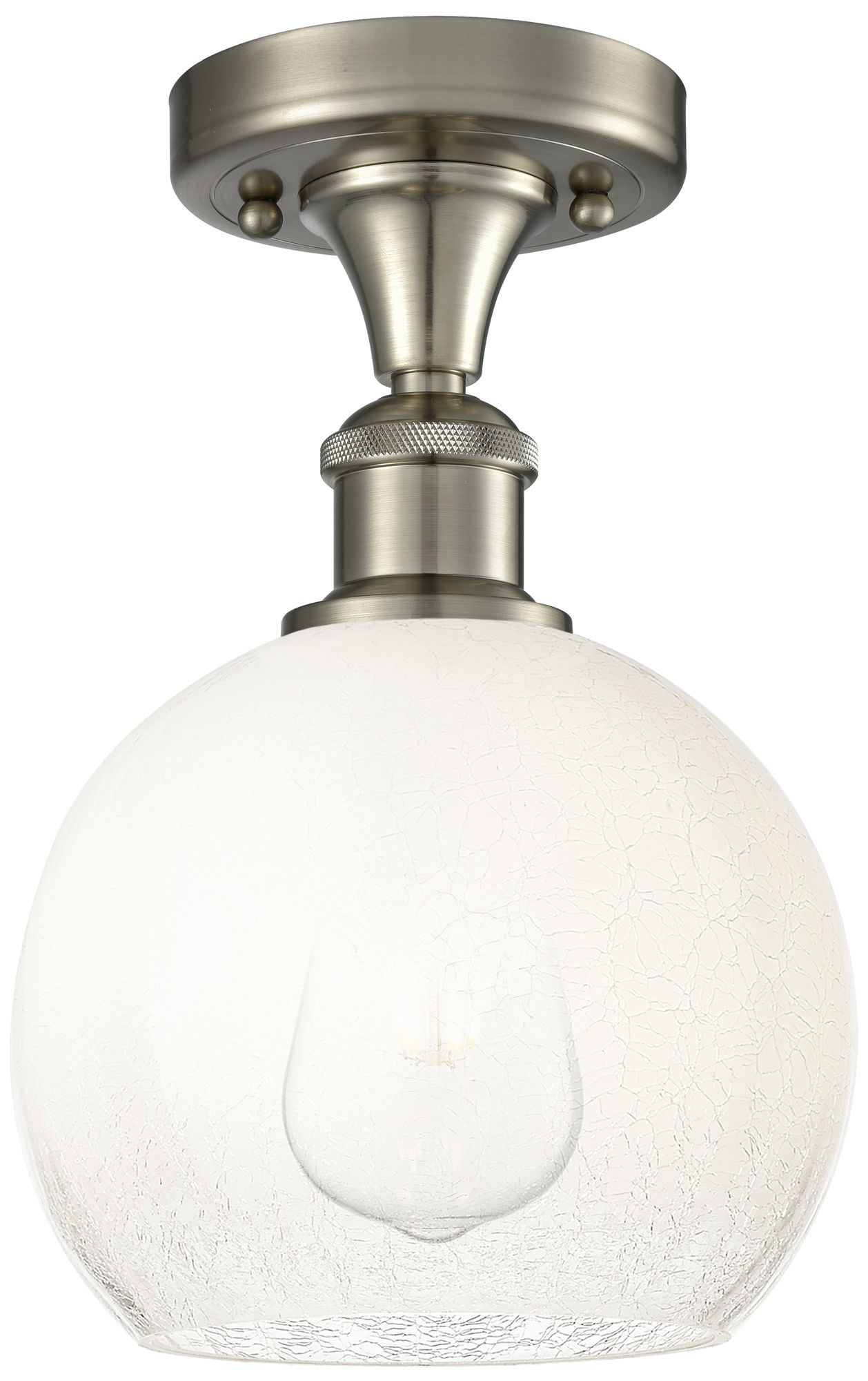 Ballston Brookhaven Globe 8"W Brushed Nickel Semi-Flush w/ Opal Shade