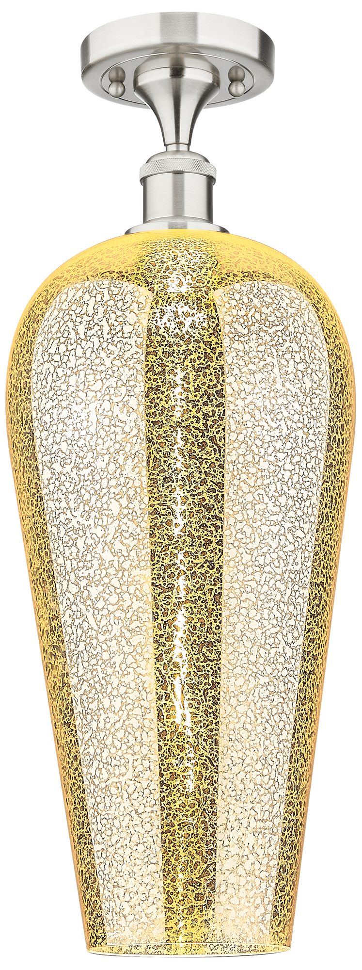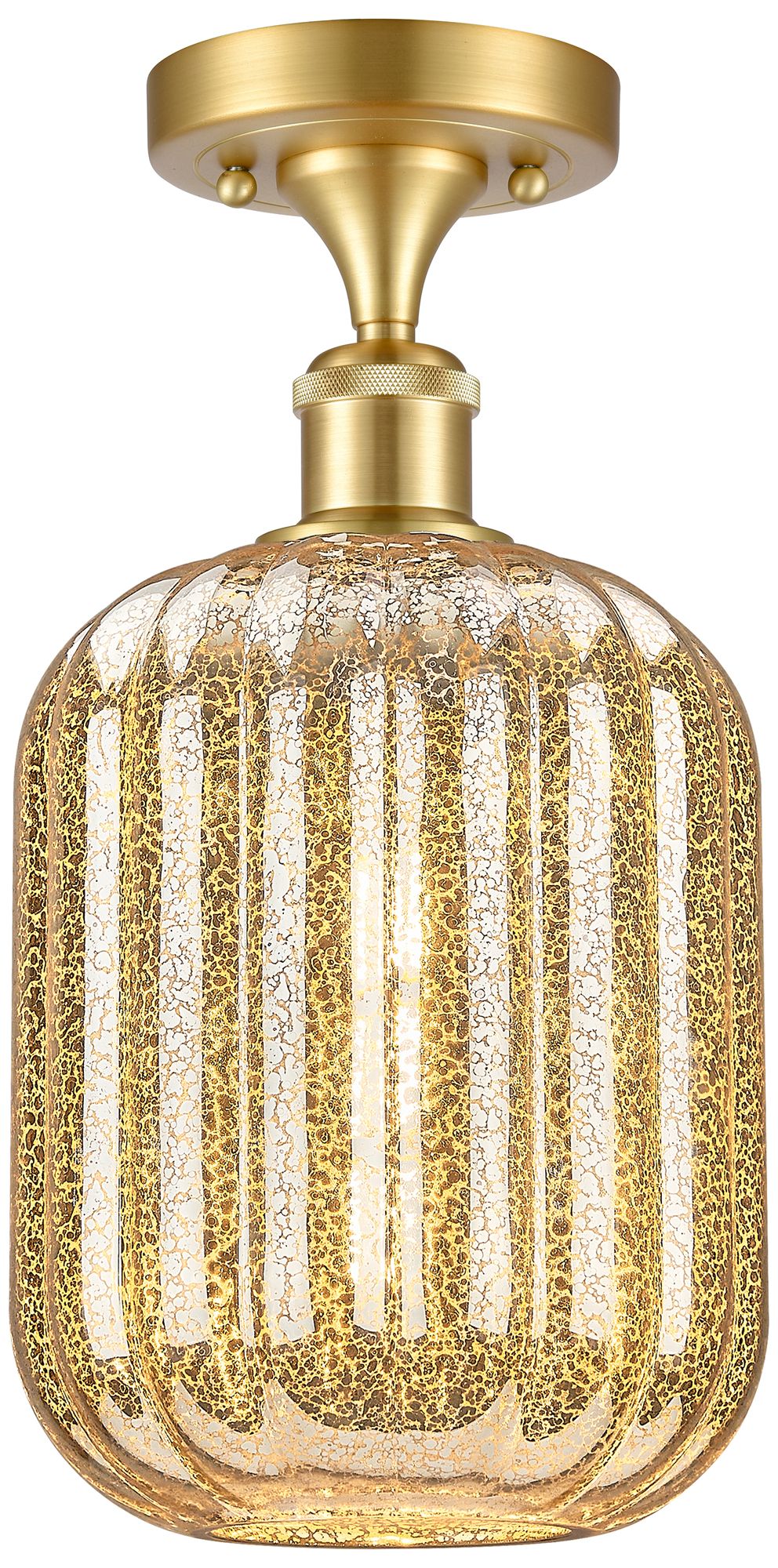 Ballston Preston 7"W Satin Gold Semi.Flush Mount w/ Mercury Jar Shade