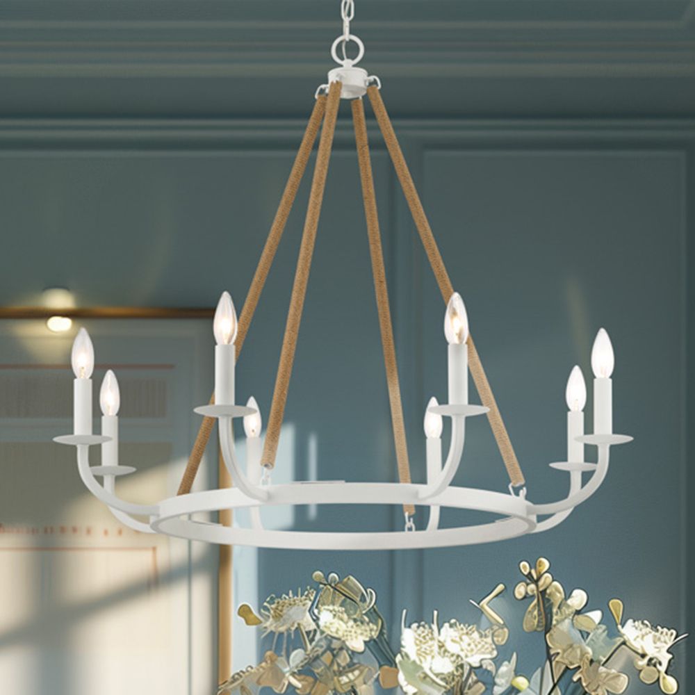 Minka-Lavery Lanton 8-Light Sand White with Natural Rope Chandelier