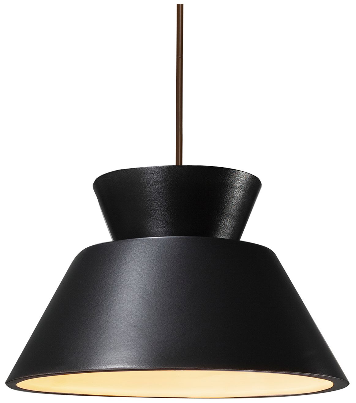 Radiance Fluted 13"W Carbon Matte Black LED Pendant w/ Bronze Rigid Stem