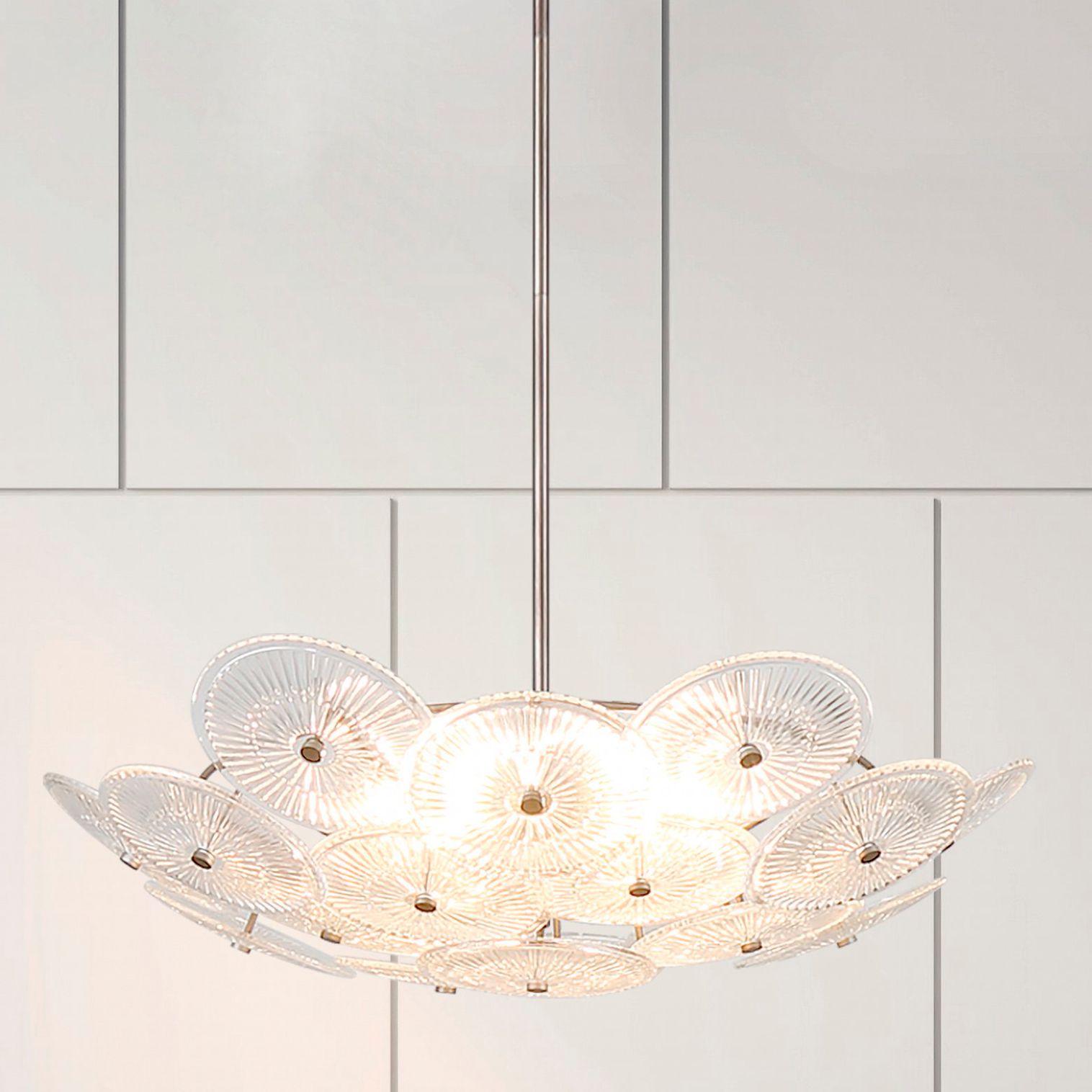 Malone 8"W 3 Light Brushed Nickel Multi Pendant w/ Striped Clear Shade