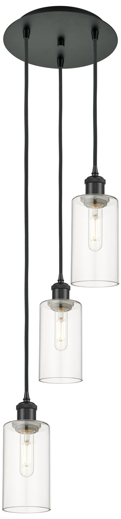 Crown Point 3 Light 13" Cord Hung Multi Pendant Matte Black Clear Shade