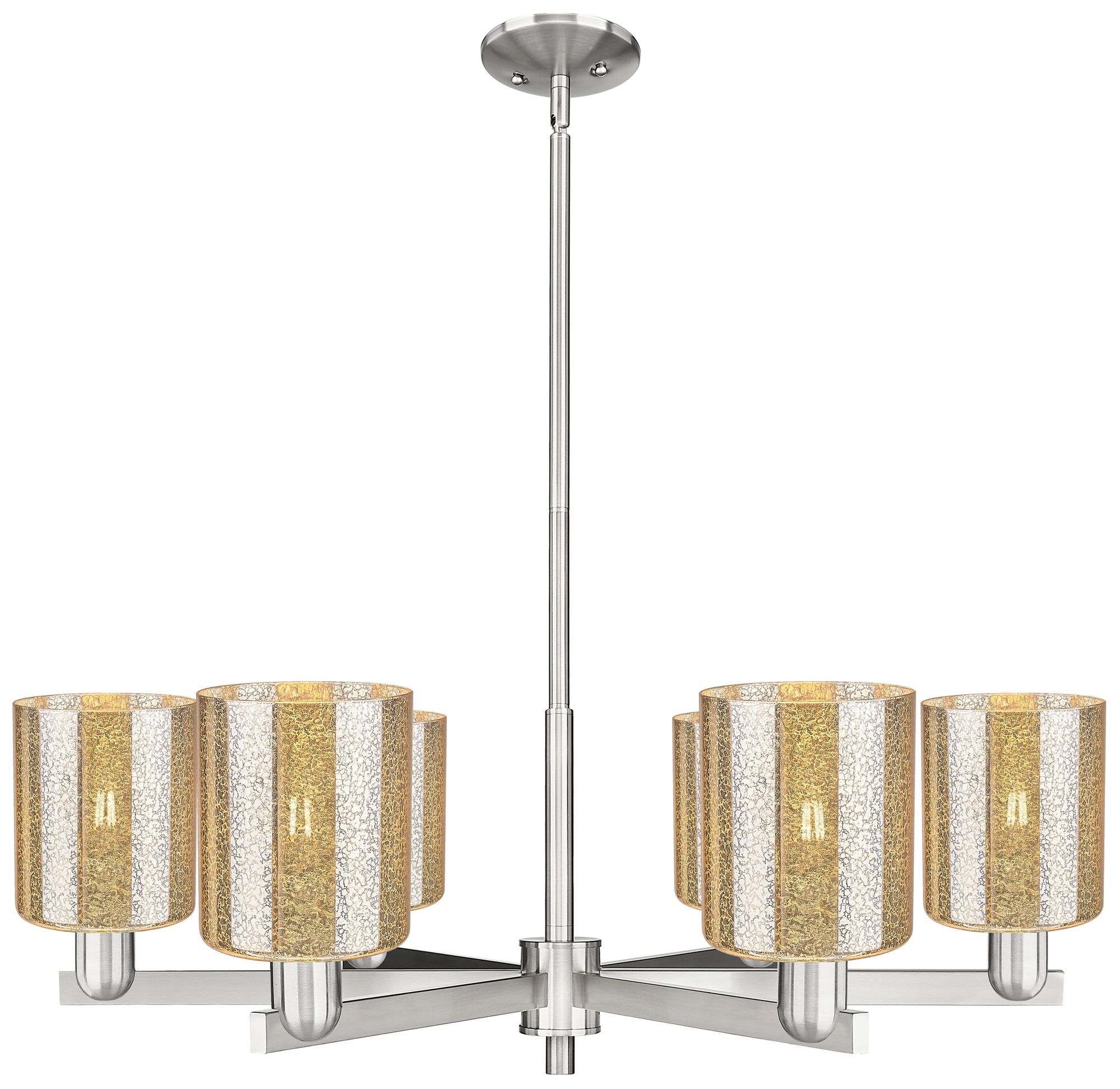 Arcadia Cobbleskill 35"W 6-Lt Satin Nickel Stem Chandelier w/ Mercury Shade