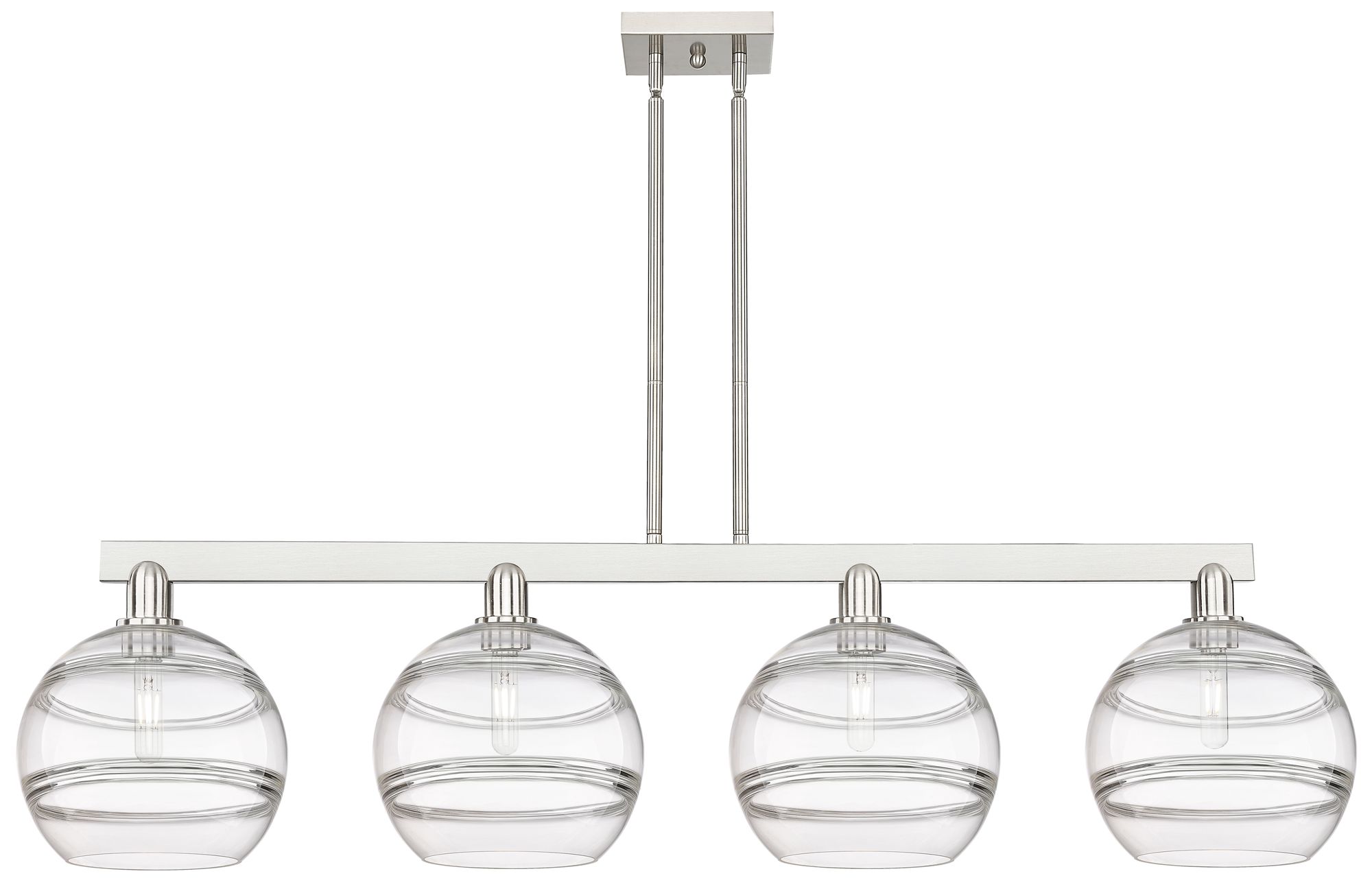 Arcadia Rochester 53"W 4 Light Nickel Stem Island Light w/ Clear Shade
