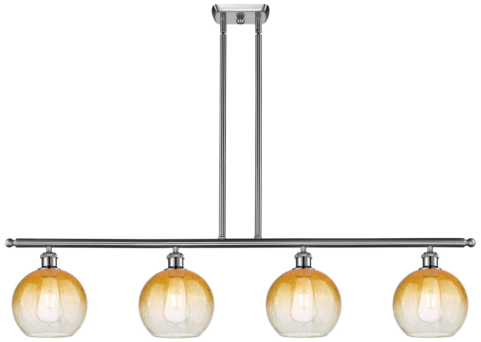 Ballston Brookhaven Globe 48"W 4-Lt Nickel Stem Island Light w/ Amber Shade