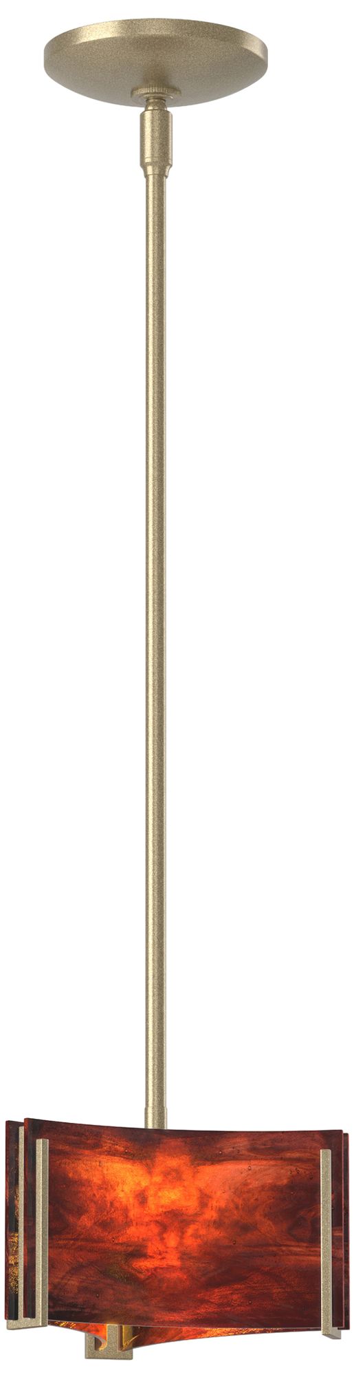 Exos 8" Wide Soft Gold Mini Pendant w/ Amber Swirl Glass