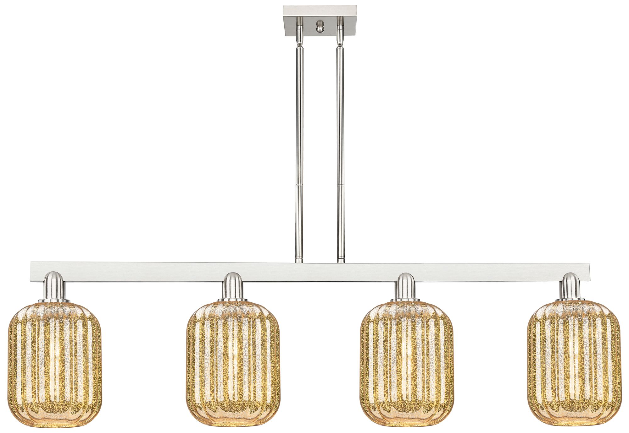 Preston 48"W 4-Lt Satin Nickel Stem Island-Lt w/ Mercury Jar Shade