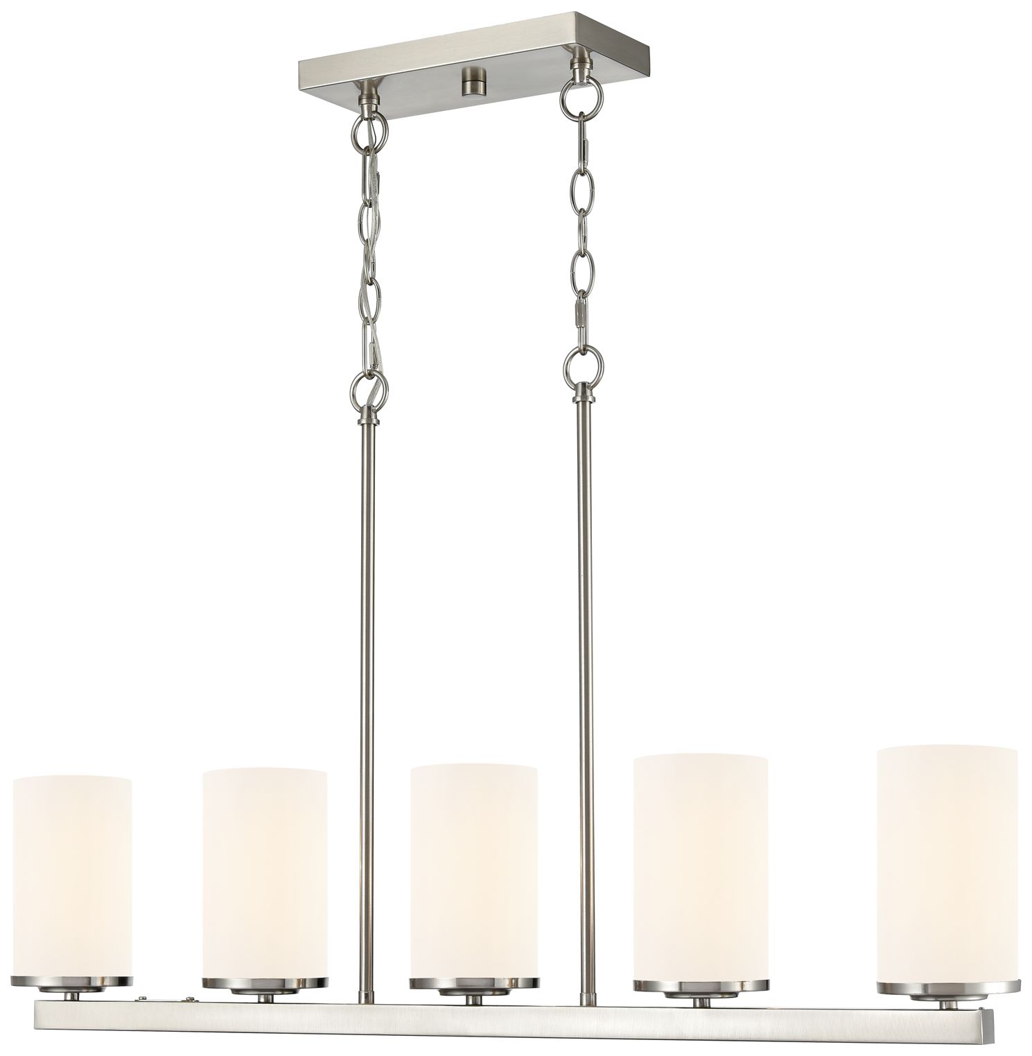 Arcadia Farmhouse 53"W 4 Light Nickel Stem Island Light w/ White Shade