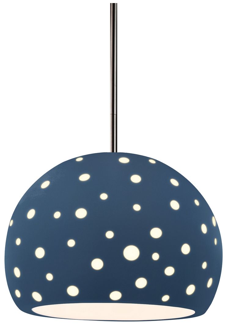Perforated Globe 7"W Sky Blue, Polished Chrome Pendant - Rigid Stem