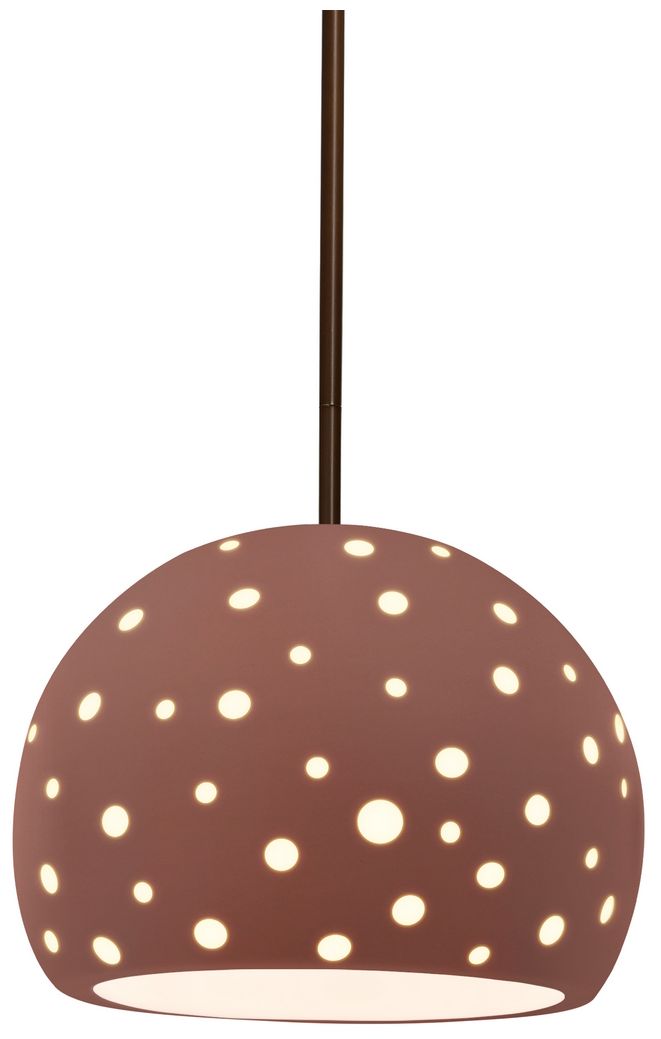 Perforated Globe 12.25"W Adobe, Dark Bronze Pendant - Rigid Stem