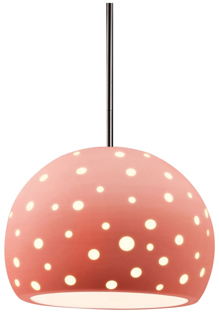 Perforated Globe 10"W Gloss Blush, Polished Chrome LED Pendant - Rigid Stem