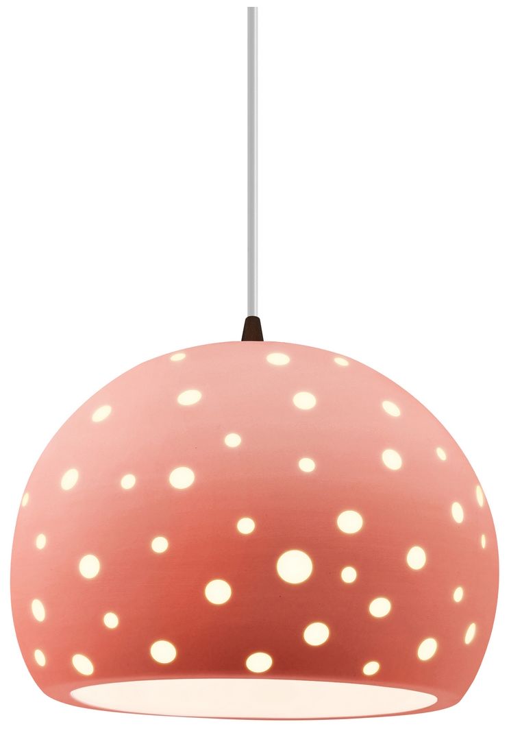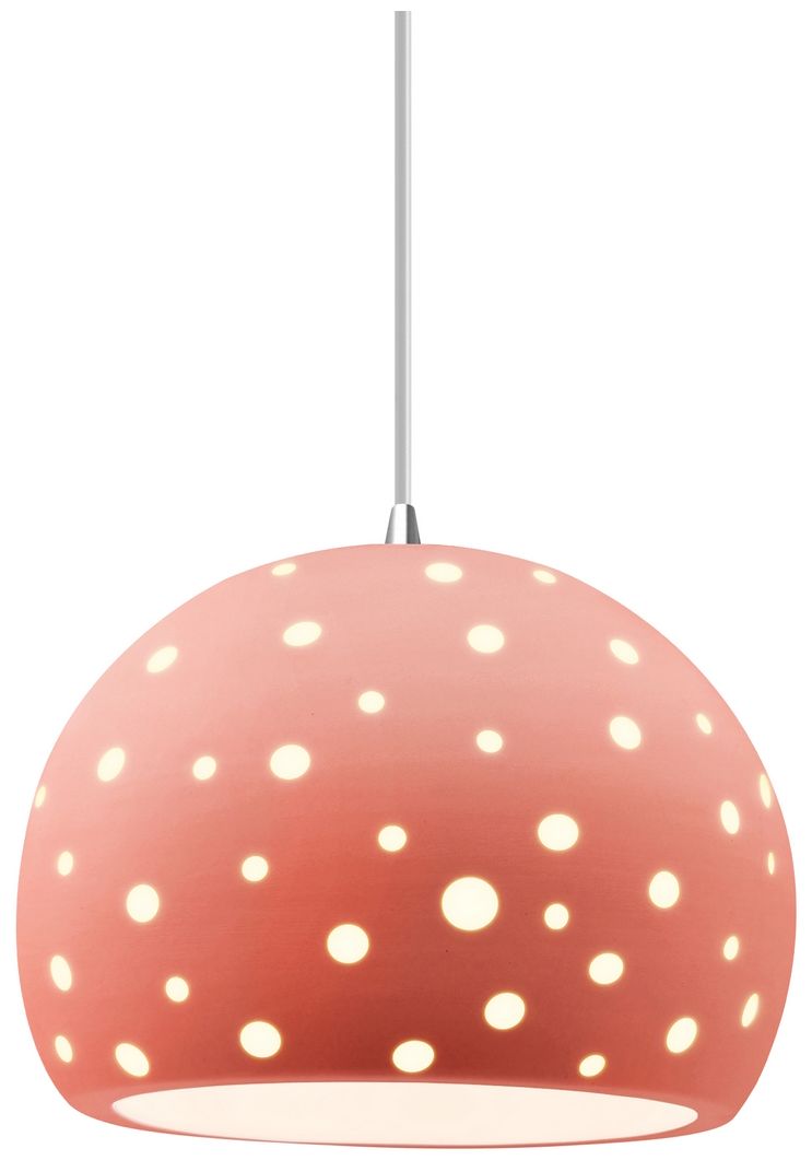 Perforated Globe 7"W Gloss Blush, Polished Chrome LED Pendant - White Cord