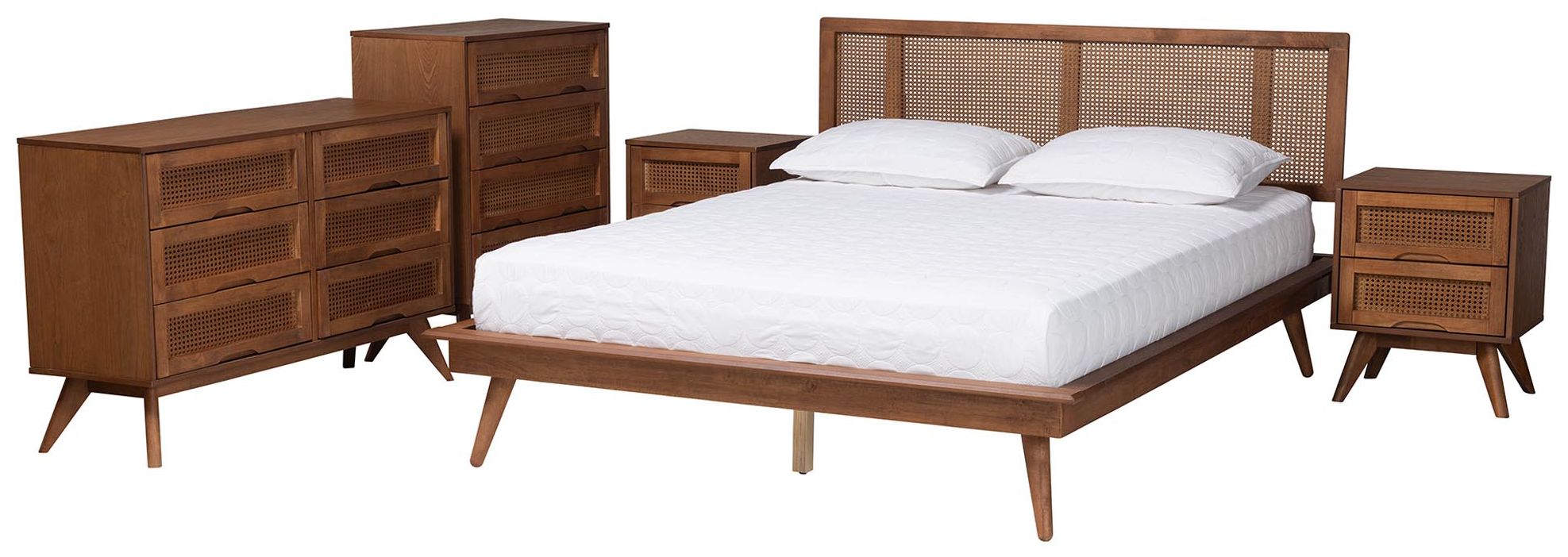 Baxton Studio Nura Wood and Rattan Queen Size 5-Piece Bedroom Set