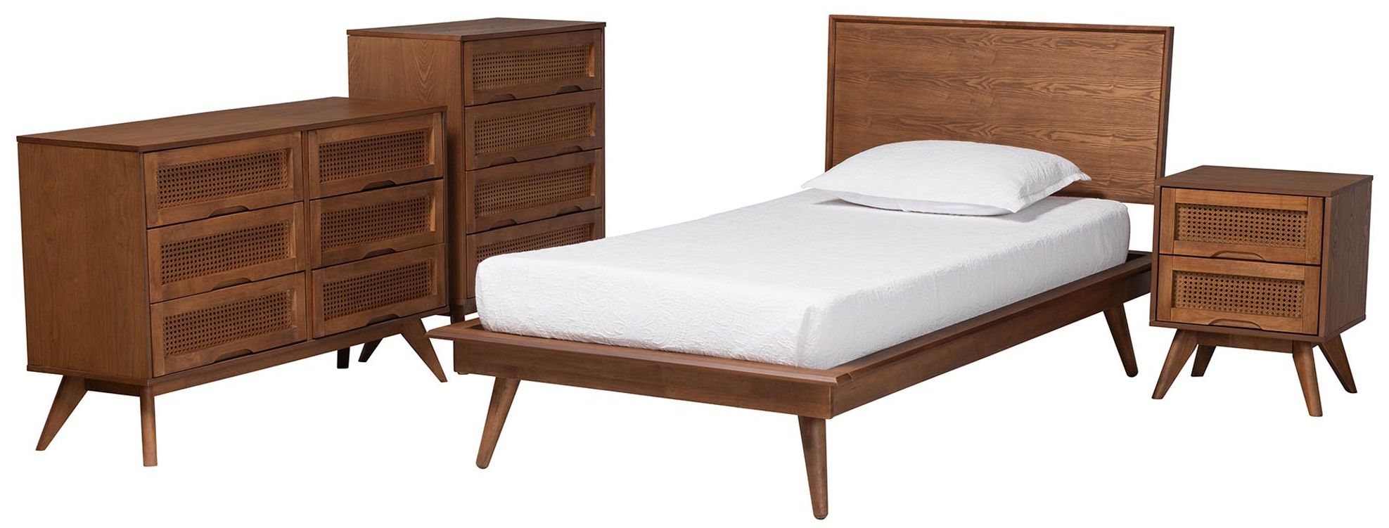 Baxton Studio Melora Wood and Rattan Twin Size 4-Piece Bedroom Set