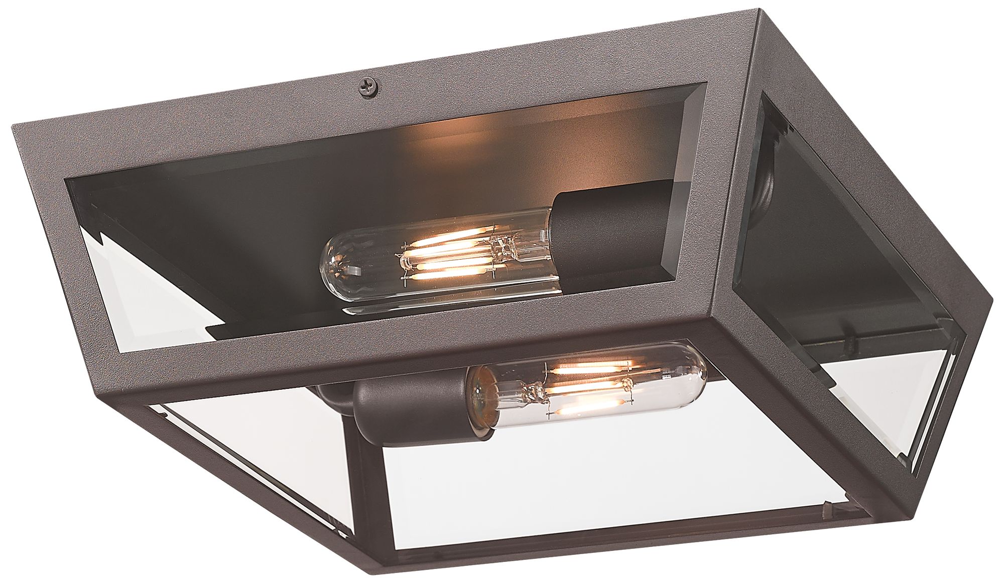Madison 12" 2-Light Bronze Outdoor Flush Mount With Clear Glass Shade