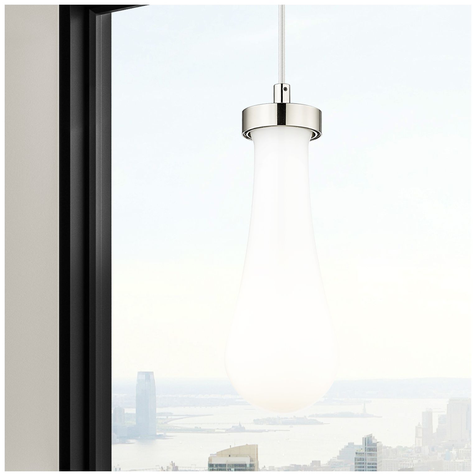 Ballston Bristol Glass 8" LED Mini Pendant - Black Brass - Matte White