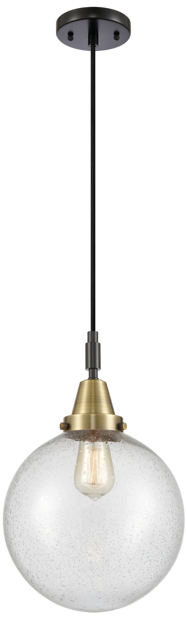Downtown Caden Beacon 10"W Cord Black Brass Pendant w/ Seedy Shade