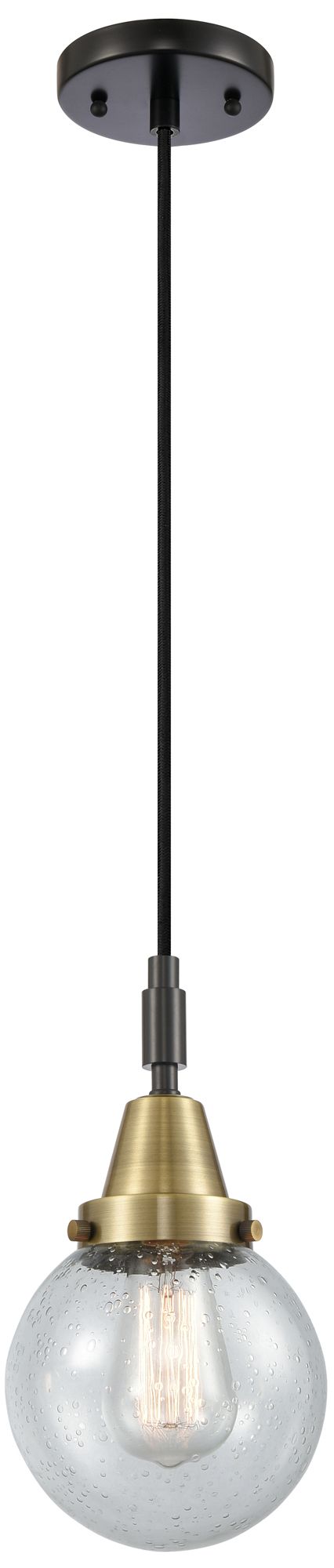 Downtown Caden Beacon 6"W Cord Black Brass Mini Pendant w/ Seedy Shade