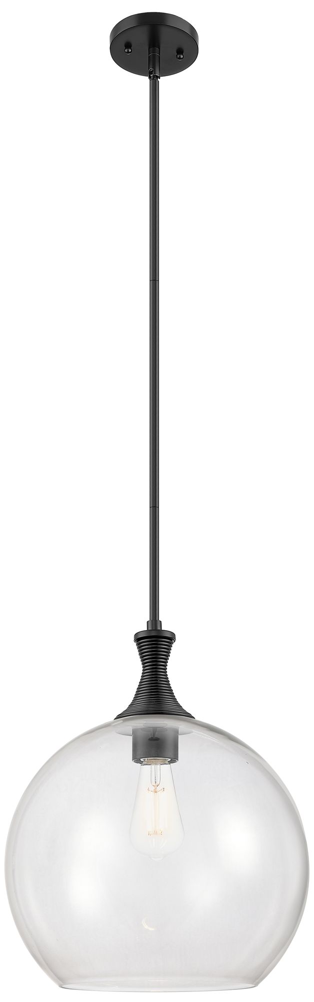 Downtown Astor 14"W Metal Stem Matte Black Pendant w/ Clear Shade