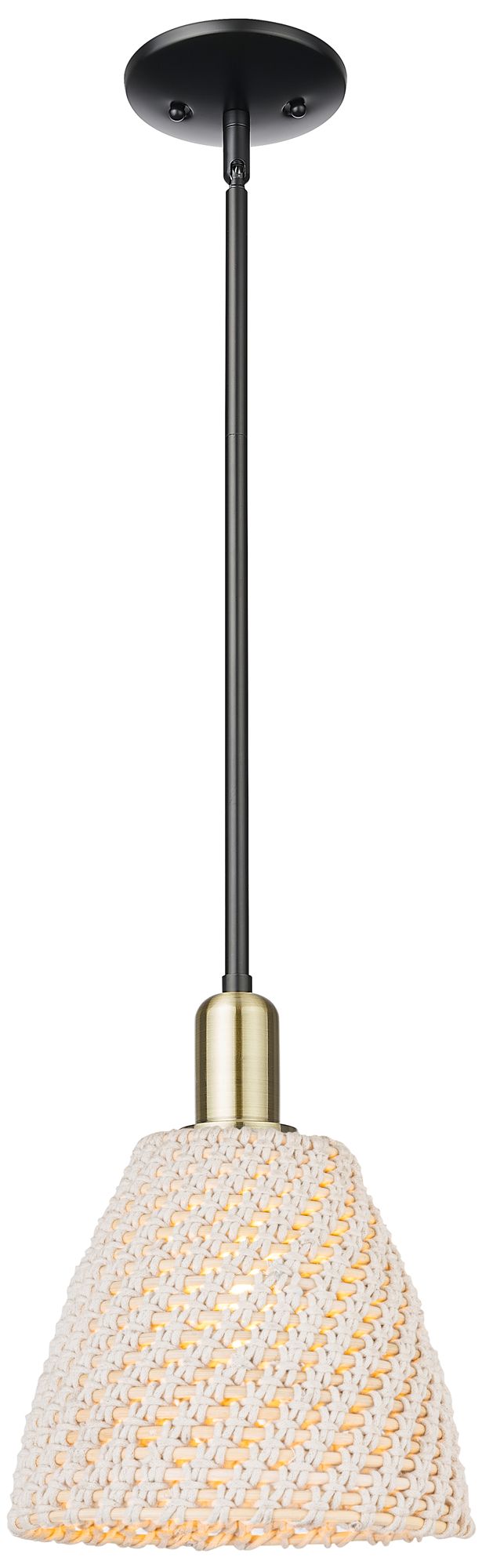 Woven Rattan 8"W Black Antique Brass Stem Hung Pendant With Natural Sh