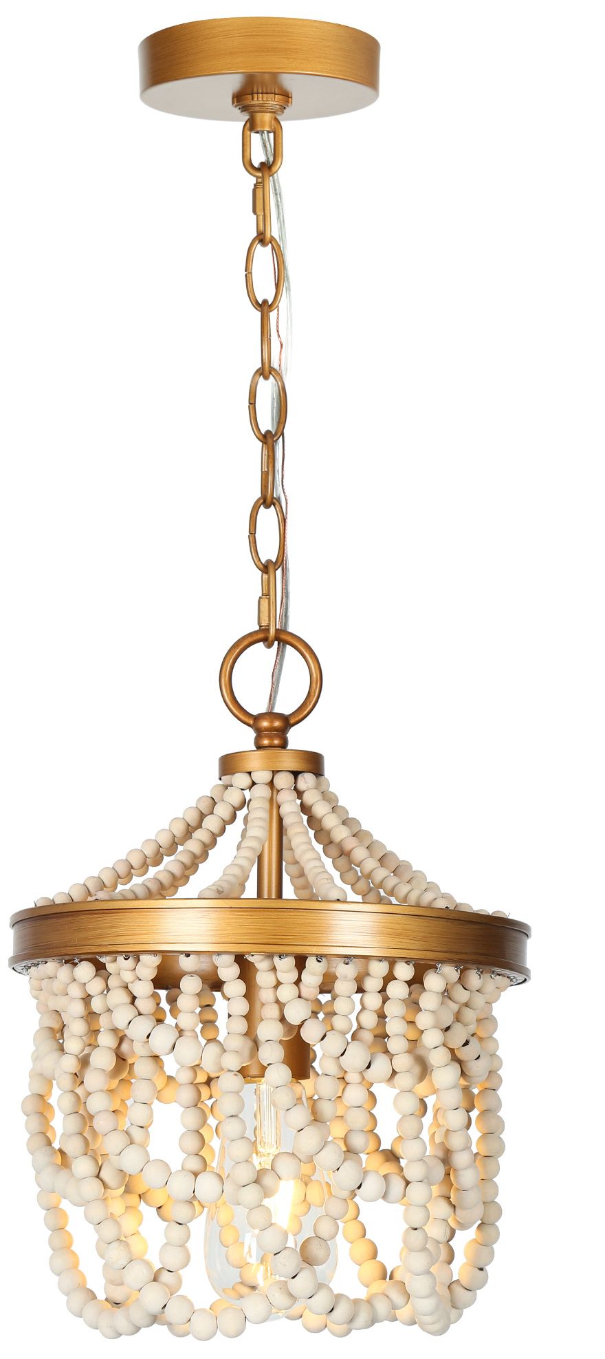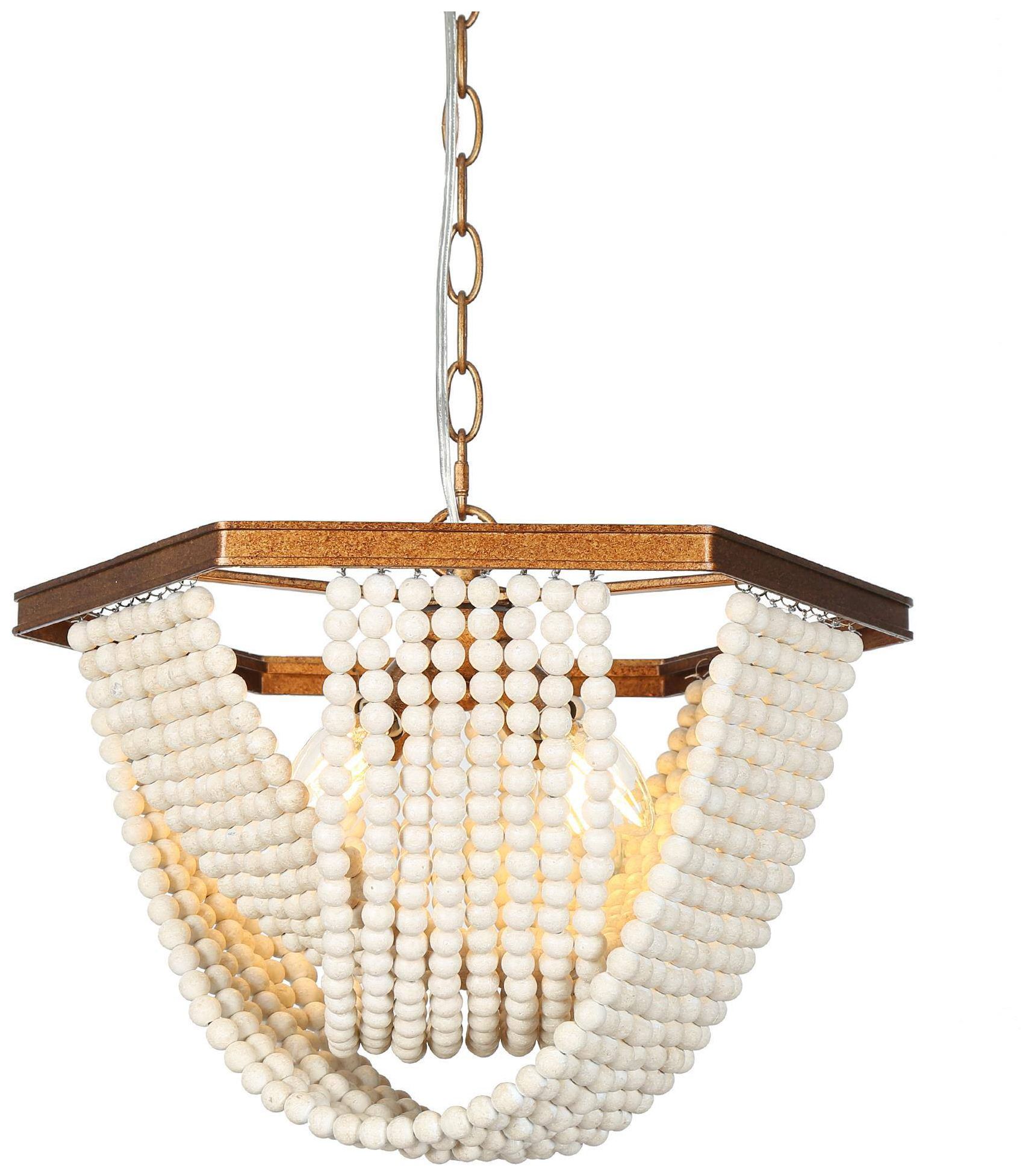 3-Light 19.7"W Drum Antique Gold Wood Chandelier