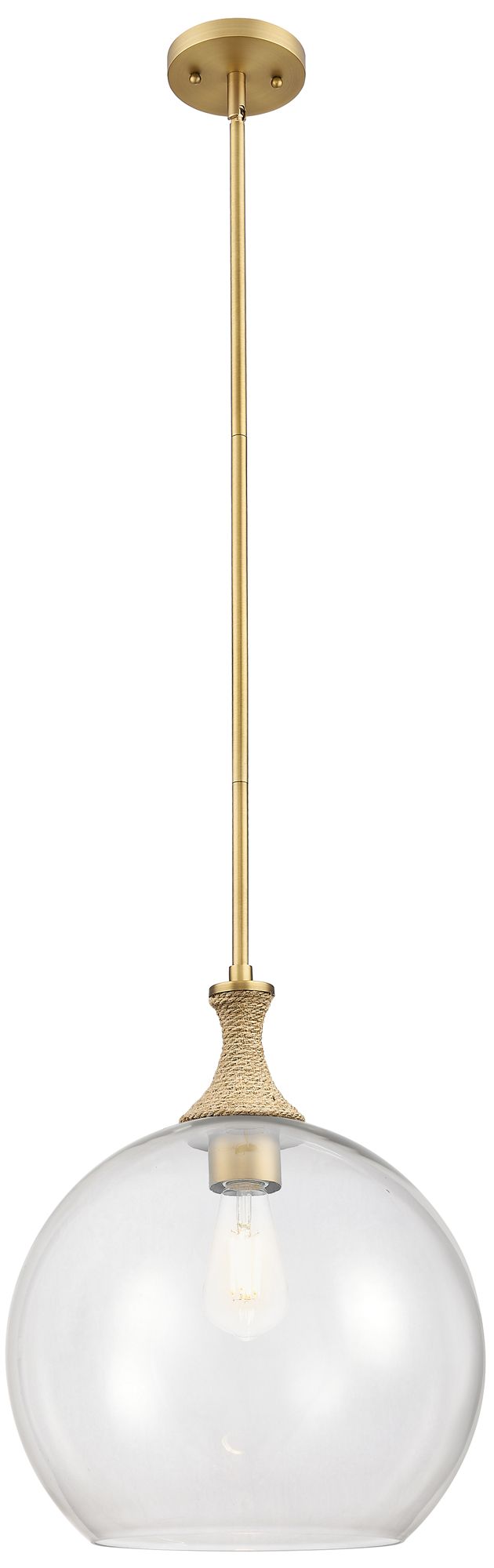 Downtown Astor 14"W Brown Rope Brushed Brass Pendant w/ Clear Shade