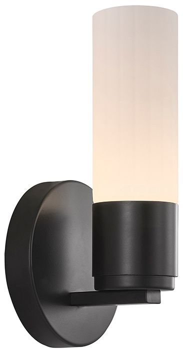 Fusion Cellini 9" High Matte Black, Ribbed Opal LED Wall Sconce