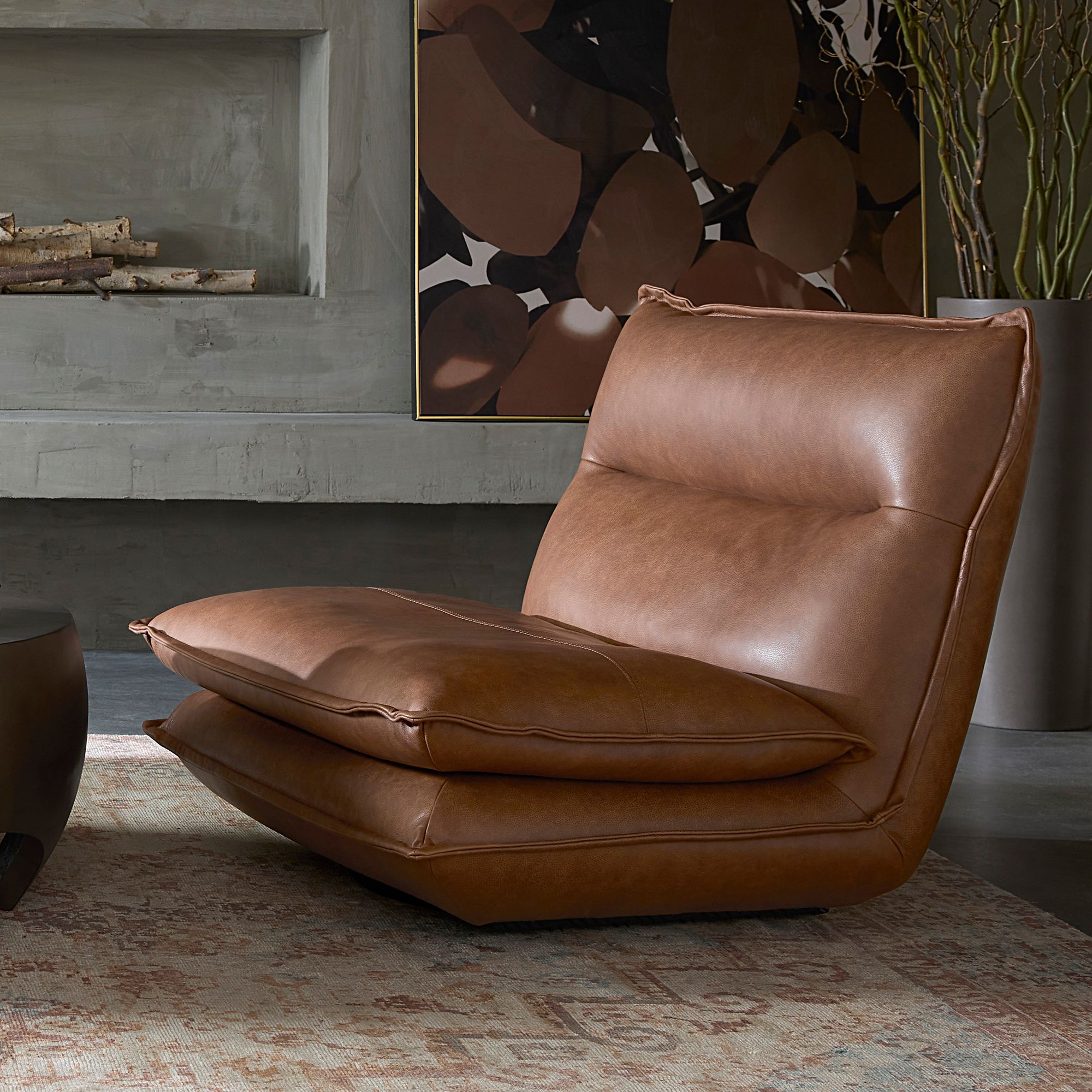 Sunpan Zancor Lounge Chair Gunmetal Tan Leather