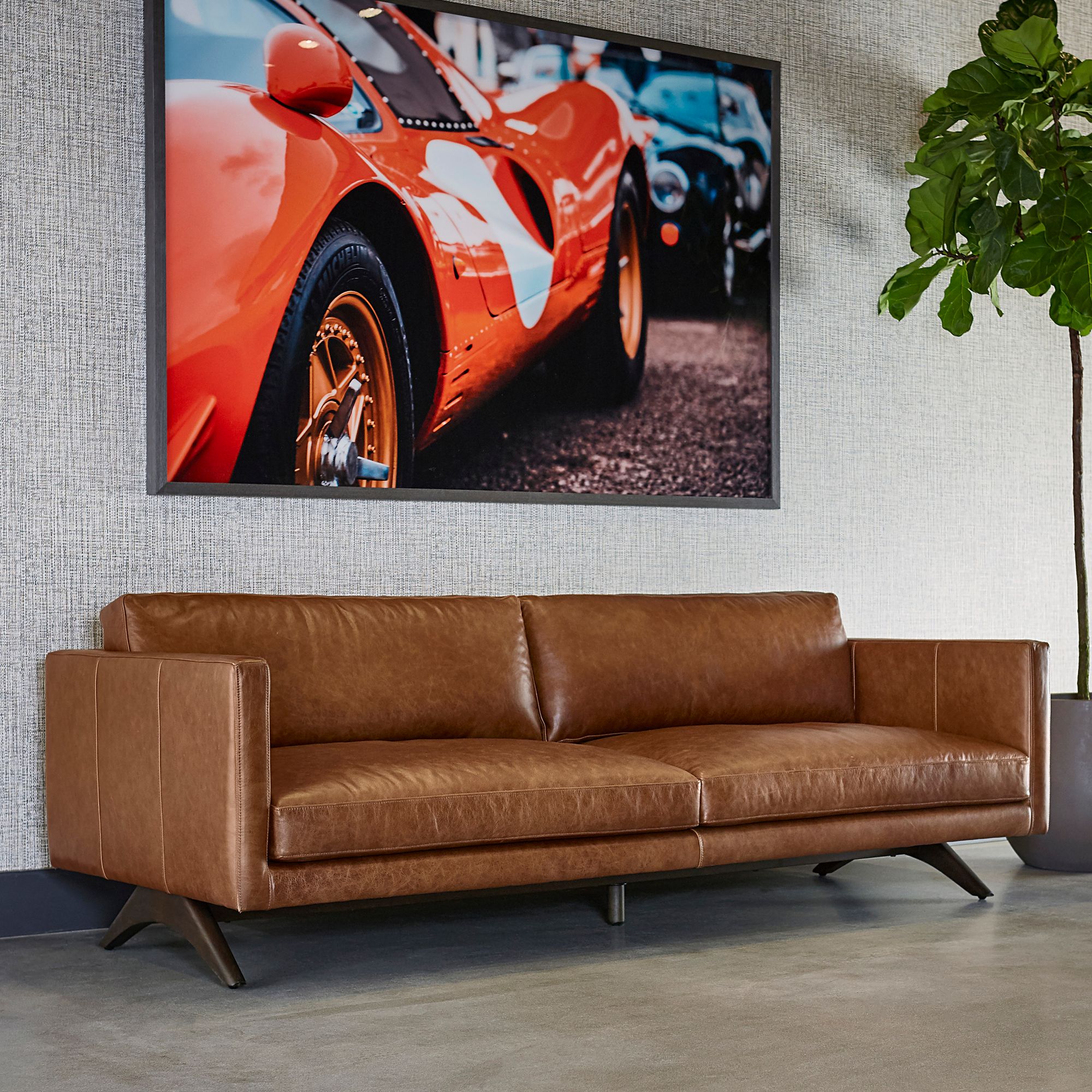 Sunpan Beau Sofa Chaise Raf Lucia Tobacco Leather
