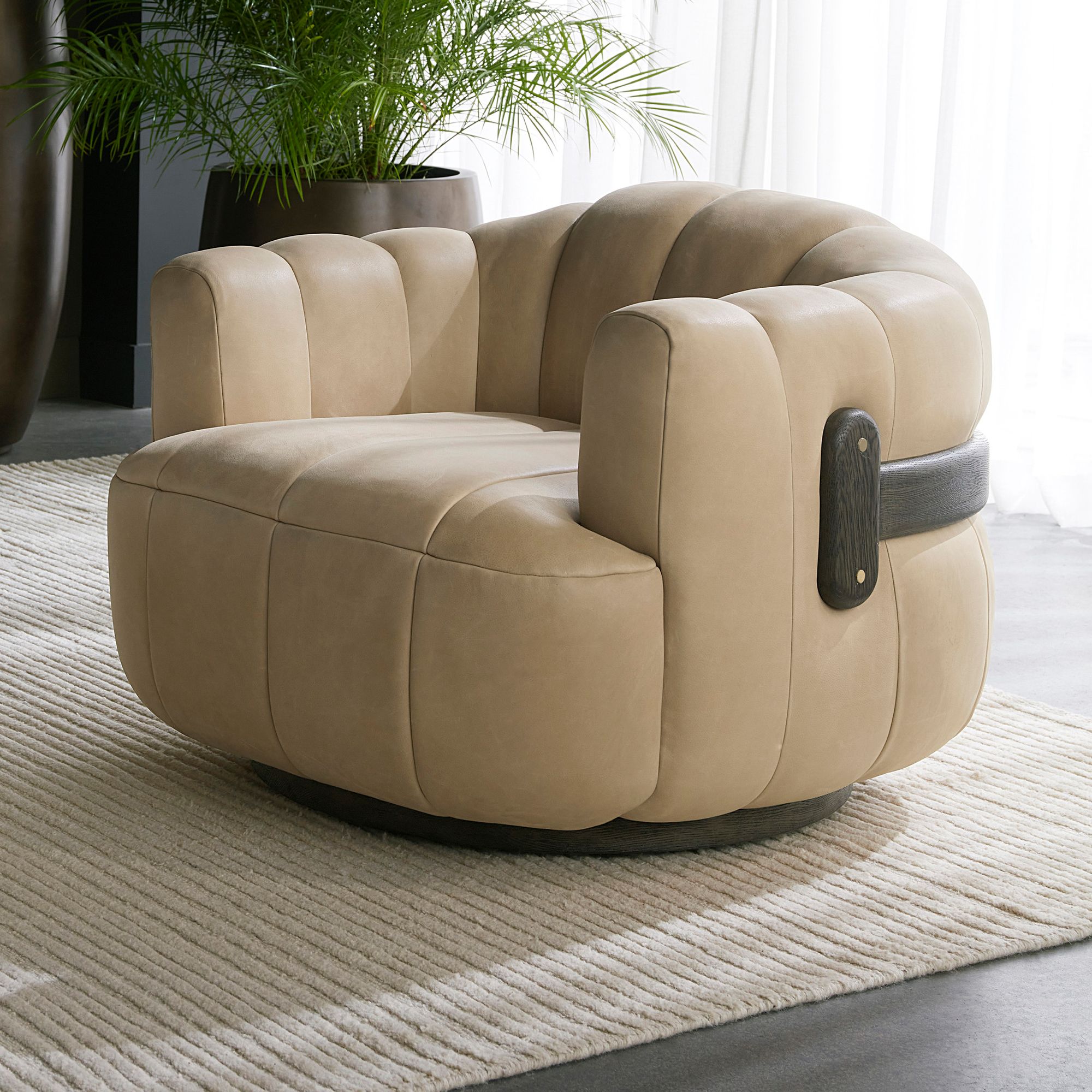 Sunpan Tadeo Swivel Armchair Dark Brown Sahara Sand Leather