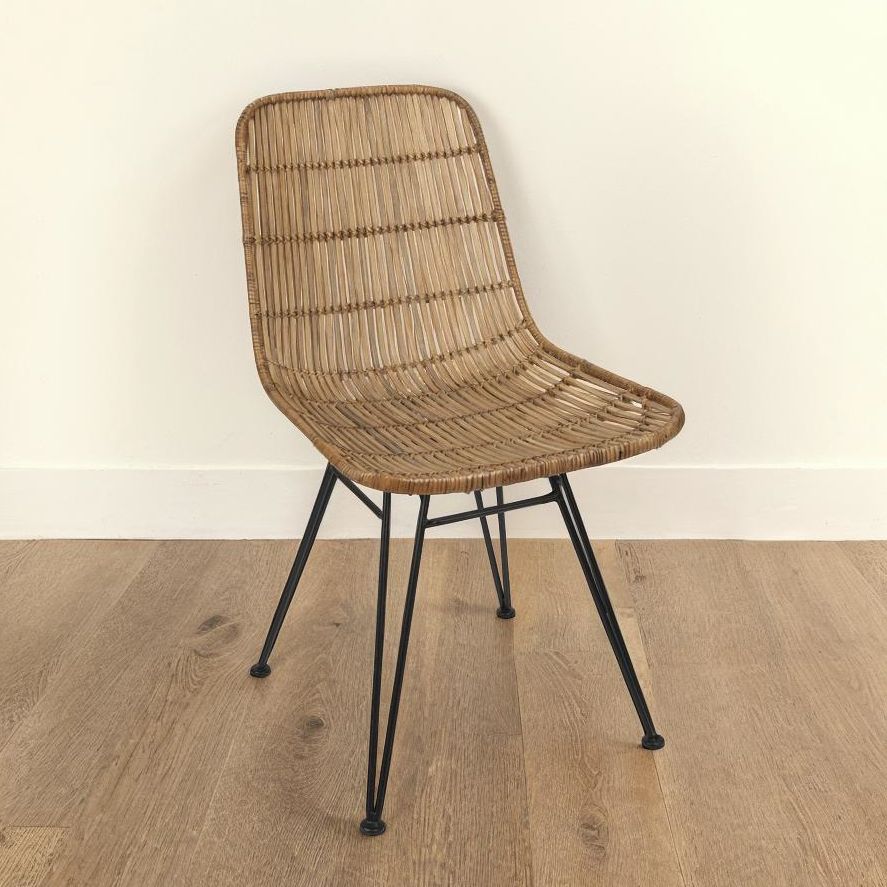 Braided Rattan Chair with Metal Frame, Natural and Black