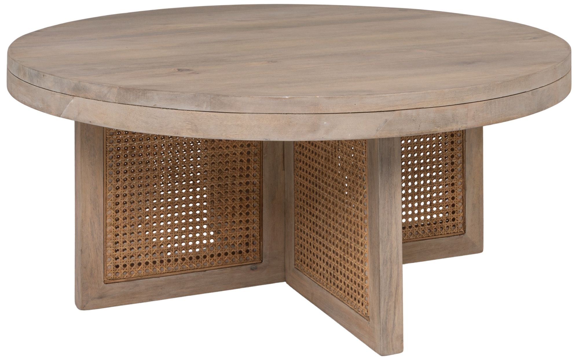 Mango Wood & Cane Round Coffee Table, Natural