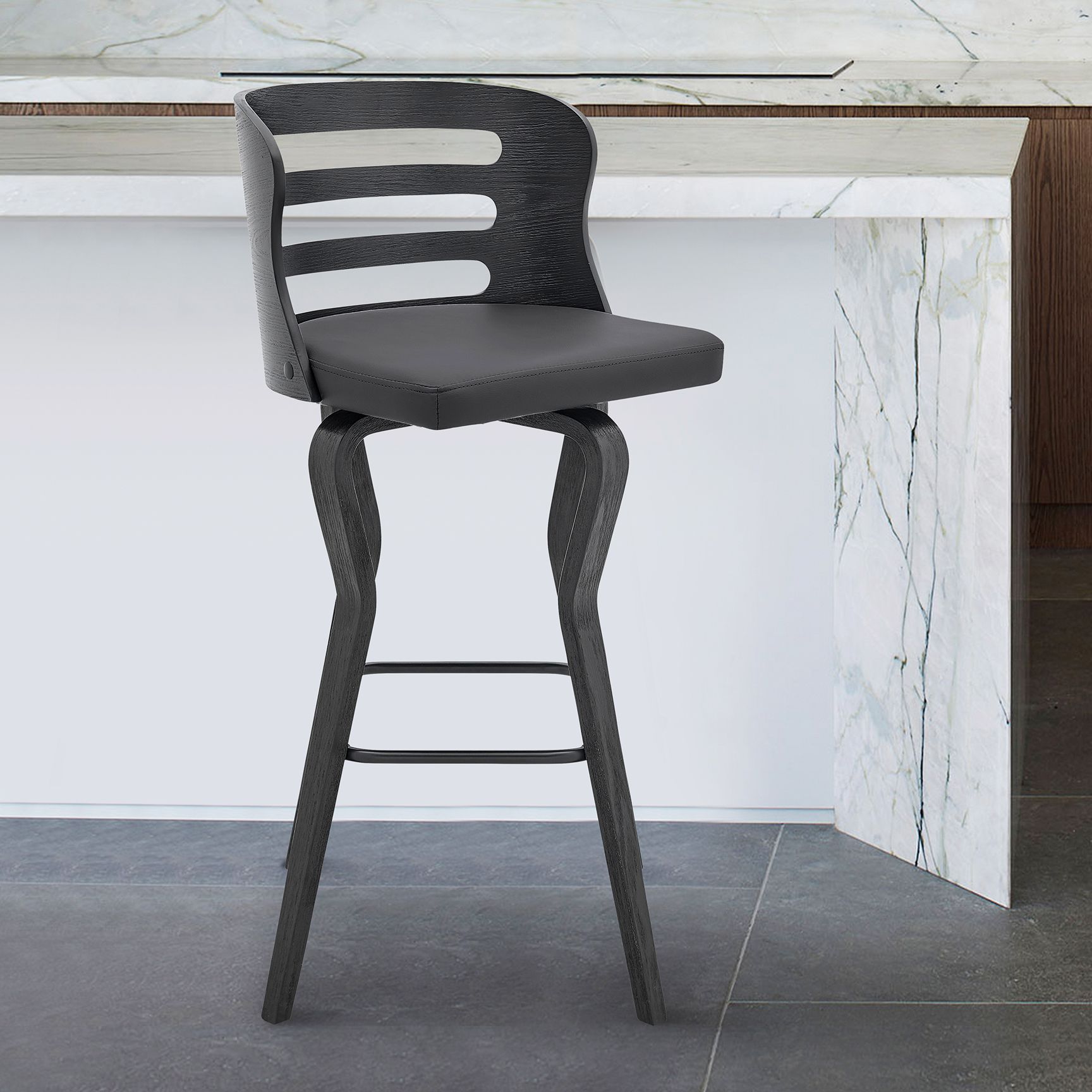 Verne 29 in. Swivel Barstool in Matte Black Finish with Gray Faux Leather