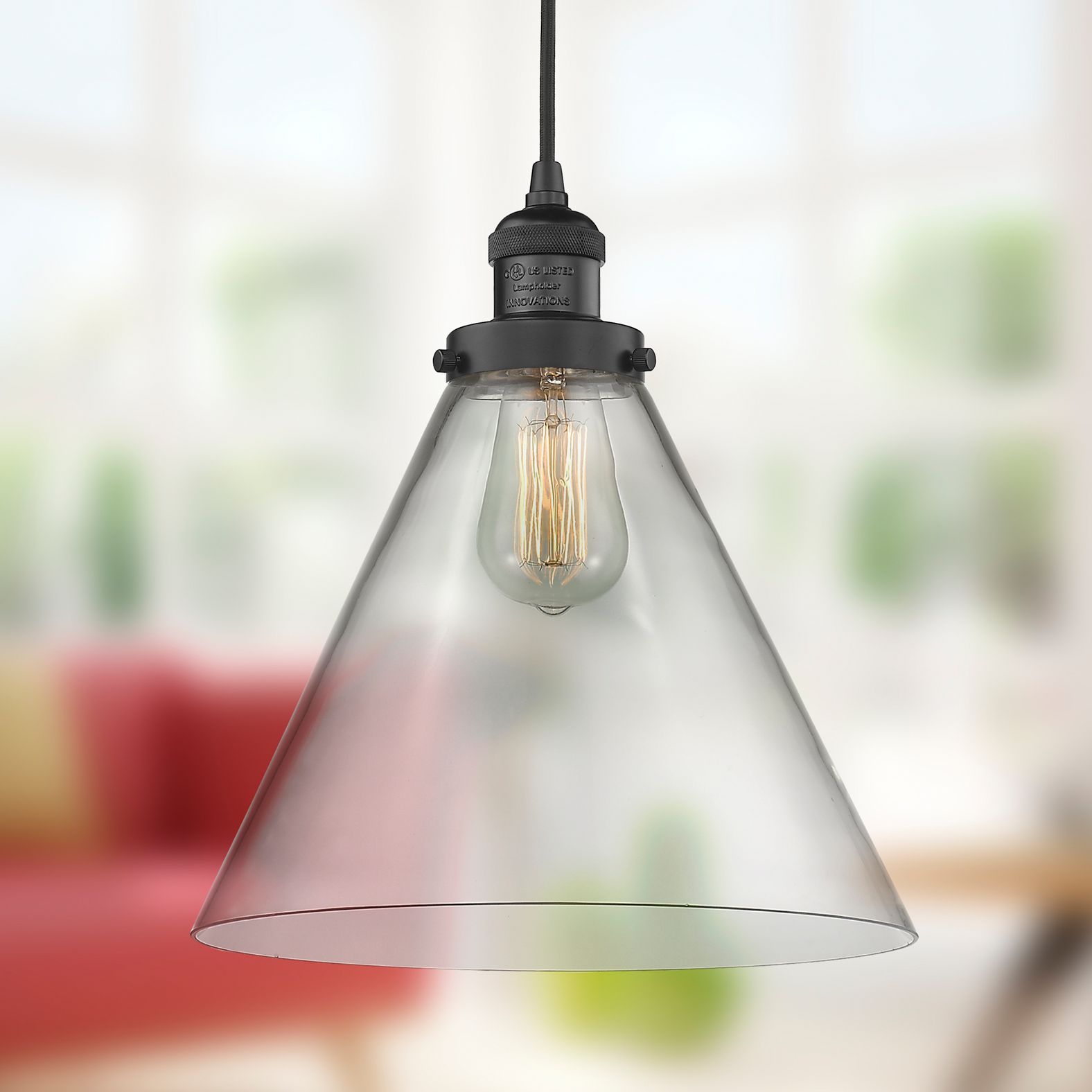 Franklin Cone 12" Matte Black Corded Mini Pendant w/ Clear Shade