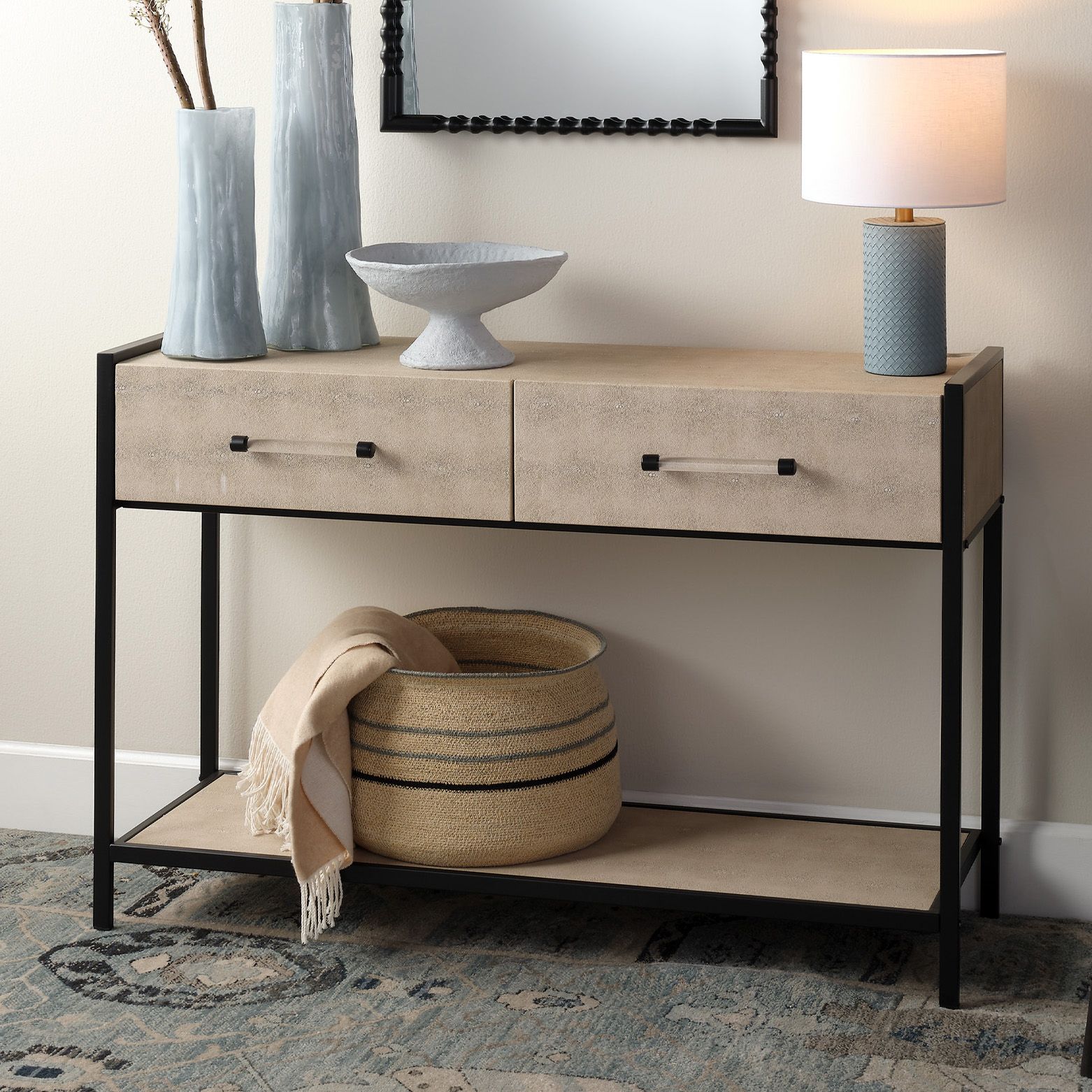 Cassius 48"W Taupe Shagreen and Black 2-Drawer Console Table