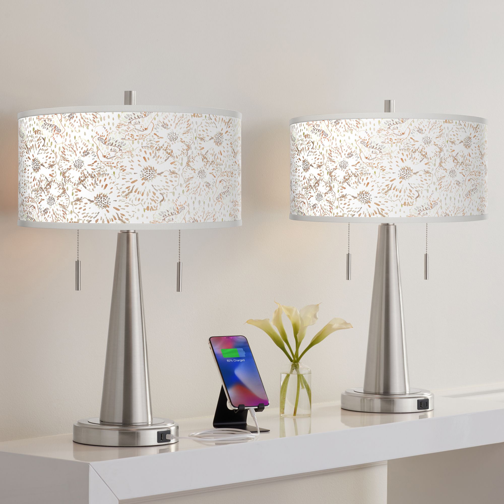 Giclee Glow Vicki 23" Windflowers Shade USB Table Lamps Set of 2
