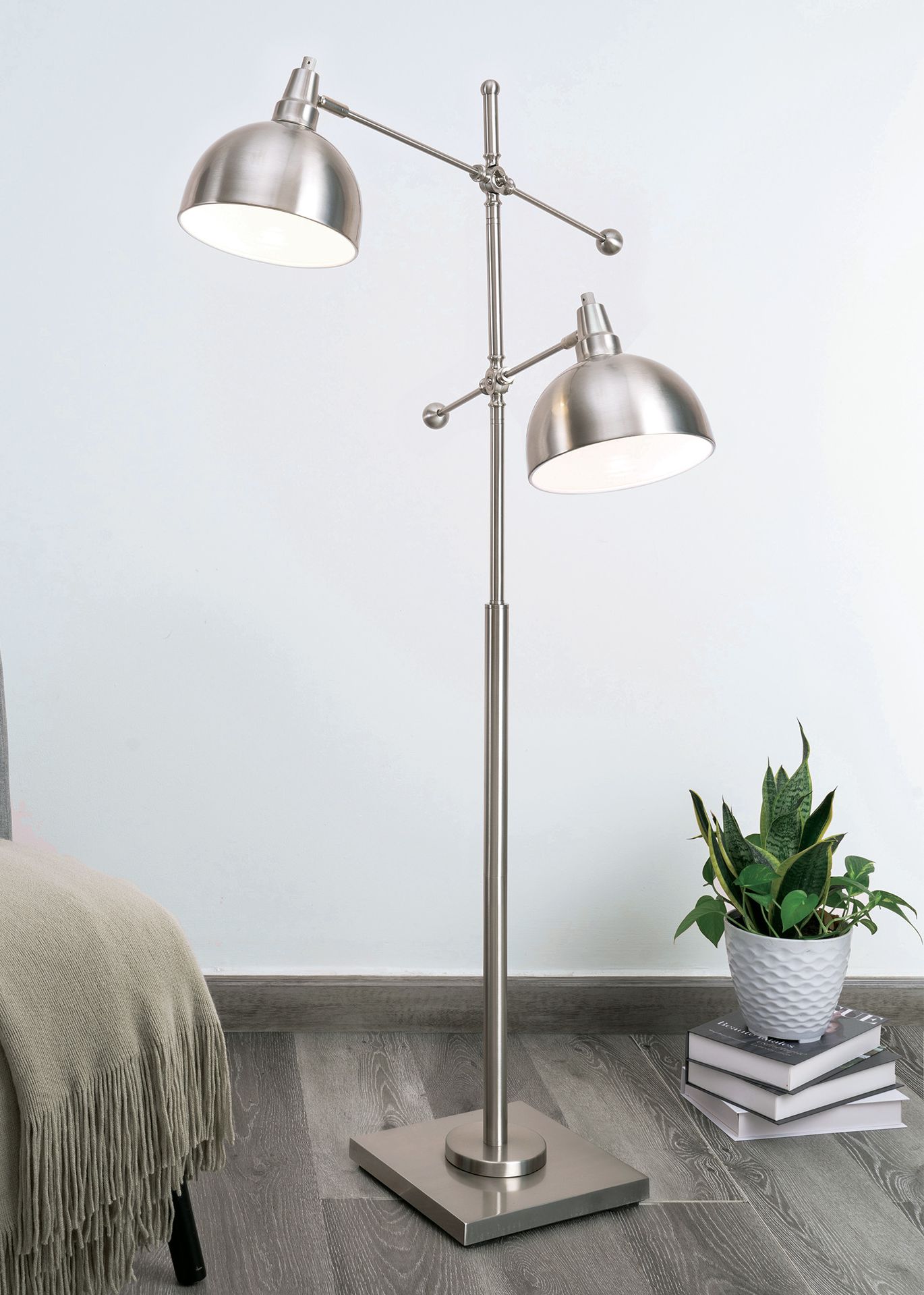 Lite Source Cupola 59" Brushed Nickel 2-Light Metal Floor Lamp