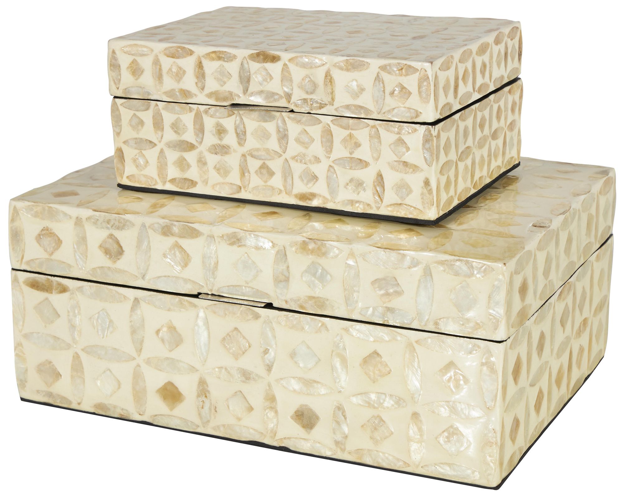 Beige Shell Moroccan Mosaic Storage Decorative Box, Set of 2 12", 8"W