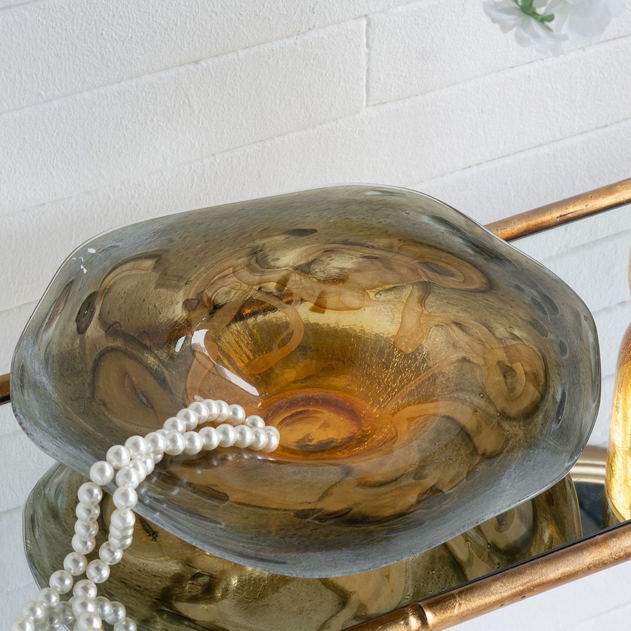 Decorative Glass Plate with Amber and Gray Gradient Finish - Amber, Gray