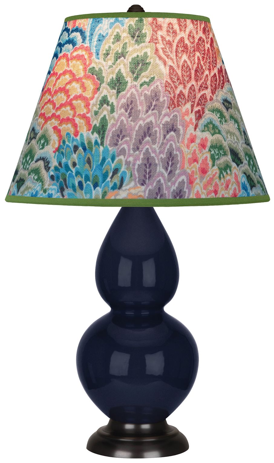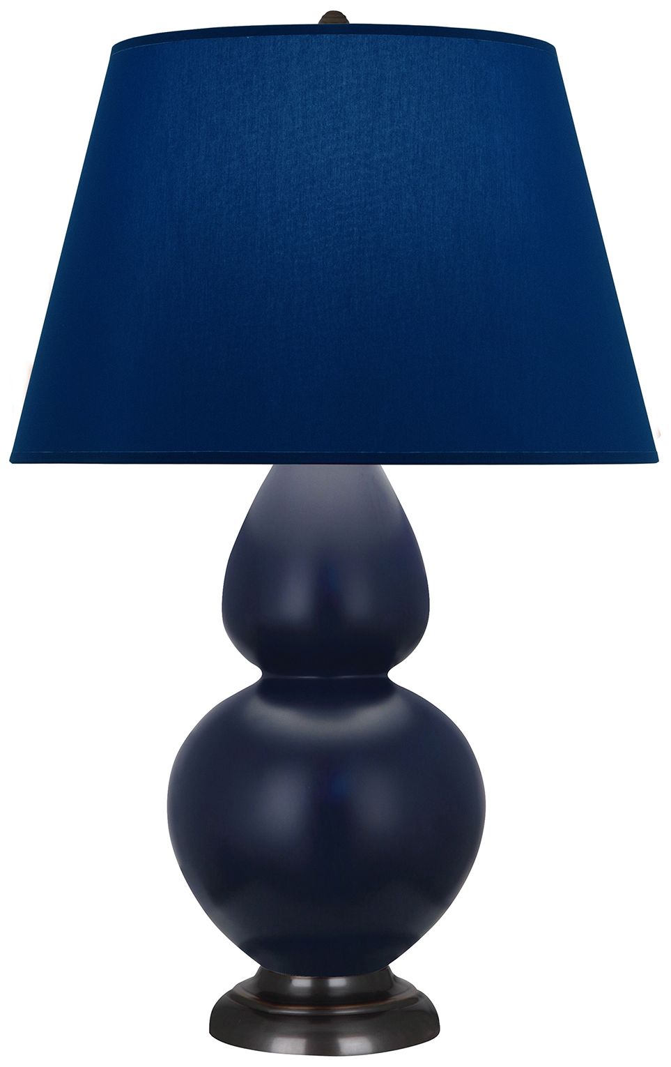 Double Gourd 31"H Matte Blue And Bronze Lamp w/ Navy And Gray Shade