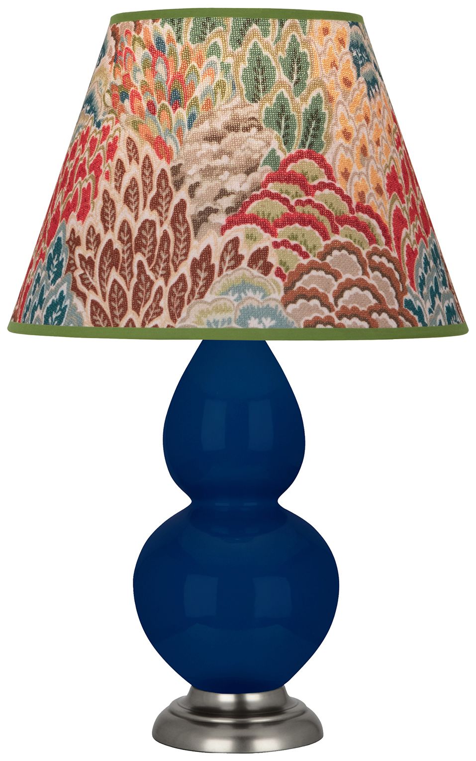 Double Gourd 22.75"H Cobalt And Silver Lamp w/ Fall Floral Shade