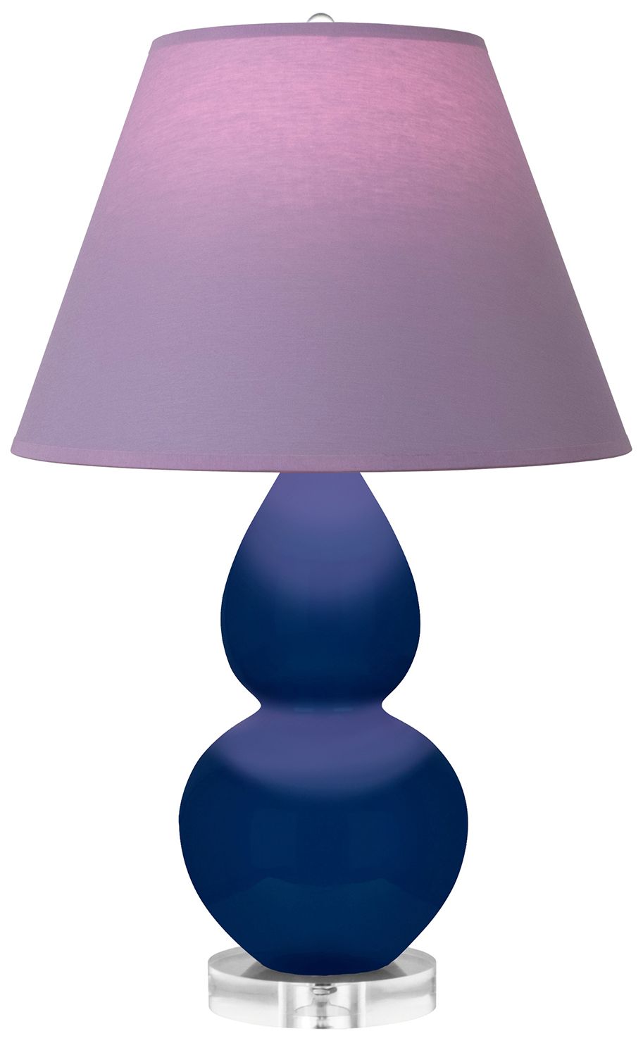 Double Gourd 22"H Cobalt And Lucite Lamp w/ Lavender And Plum Shade
