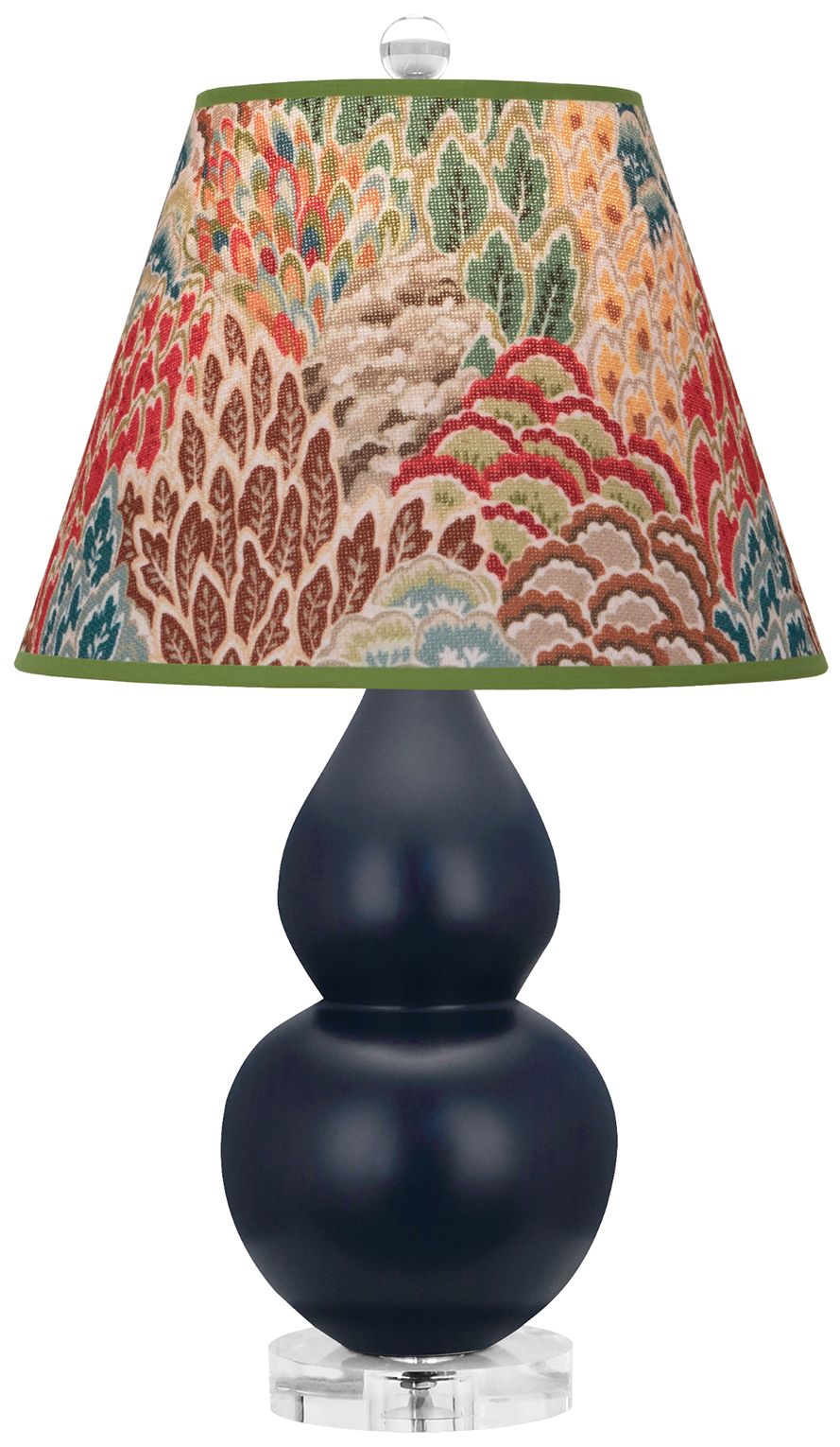 Double Gourd 22"H Matte Blue And Lucite Lamp w/ Fall Floral Shade