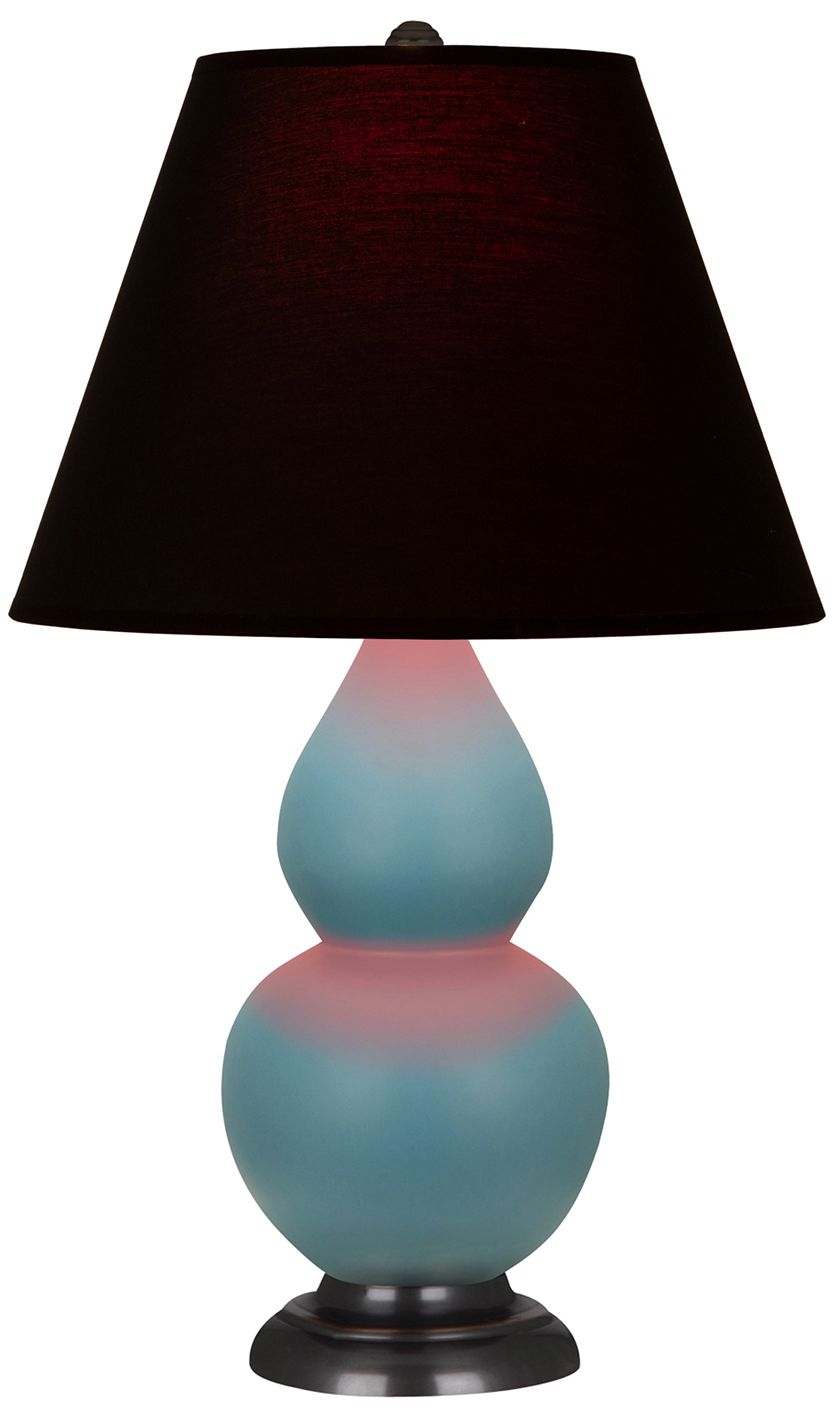 Double Gourd 22.75"H Baby Blue And Bronze Lamp w/ Ink And Rose Shade