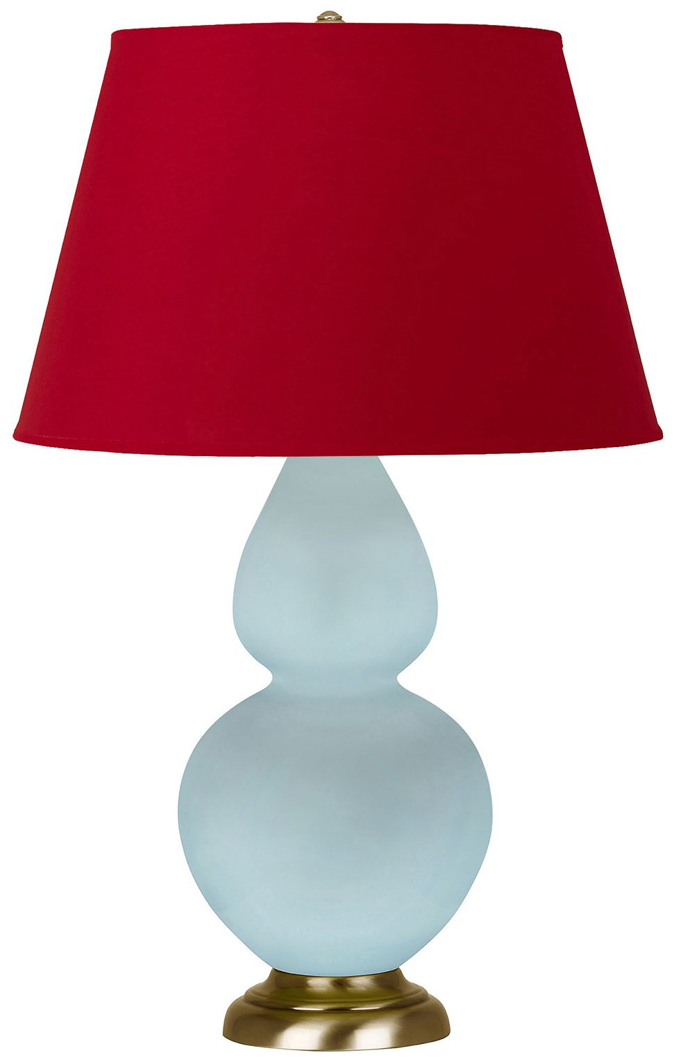 Double Gourd 31"H Baby Blue And Brass Lamp w/ Black And Red Shade