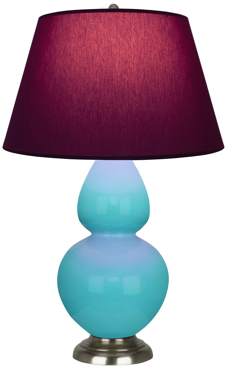 Double Gourd 31"H Egg Blue And Silver Lamp w/ Plum And Lavender Shade