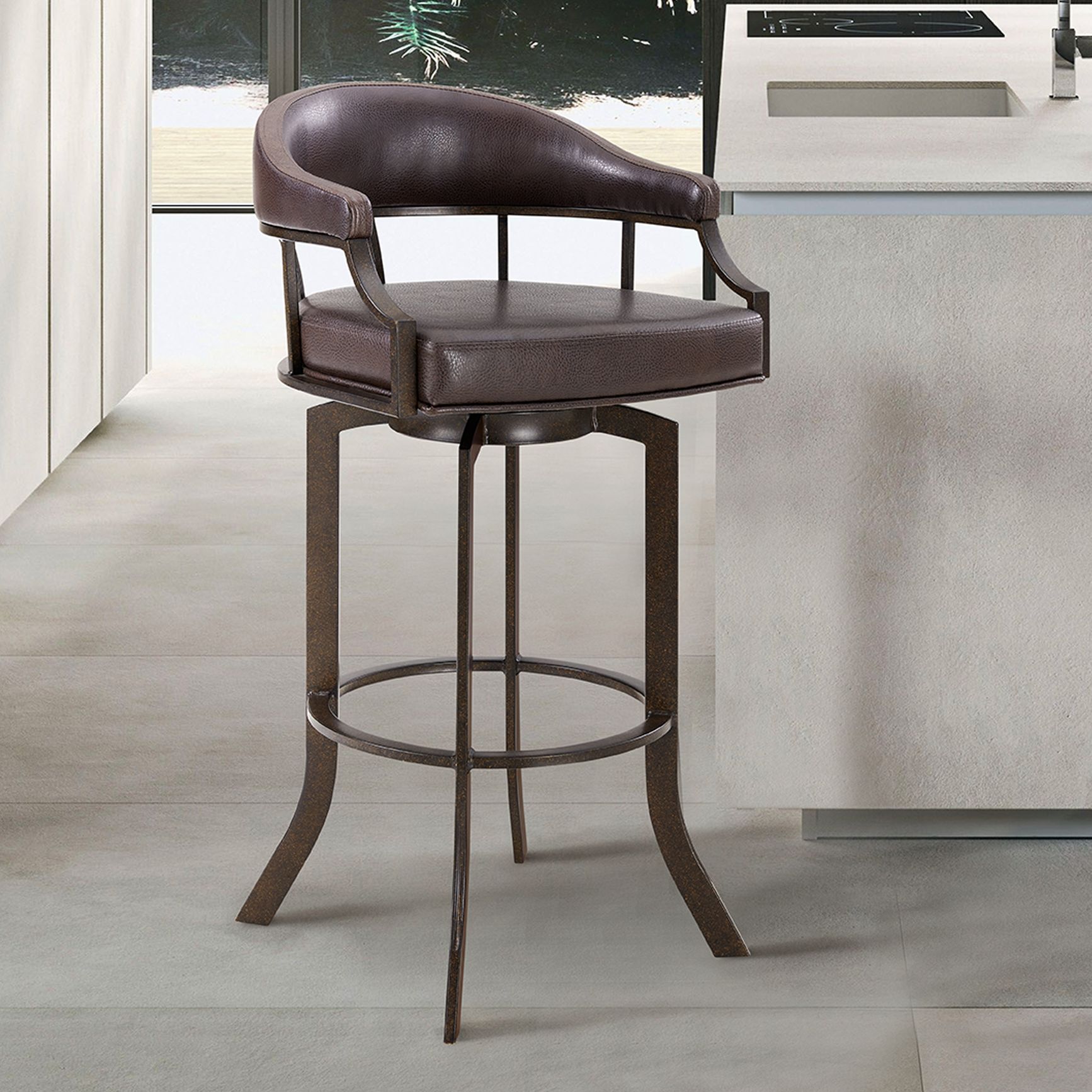 Pharaoh 26 in. Swivel Barstool in Brown Faux Leather and Auburn Bay Finish
