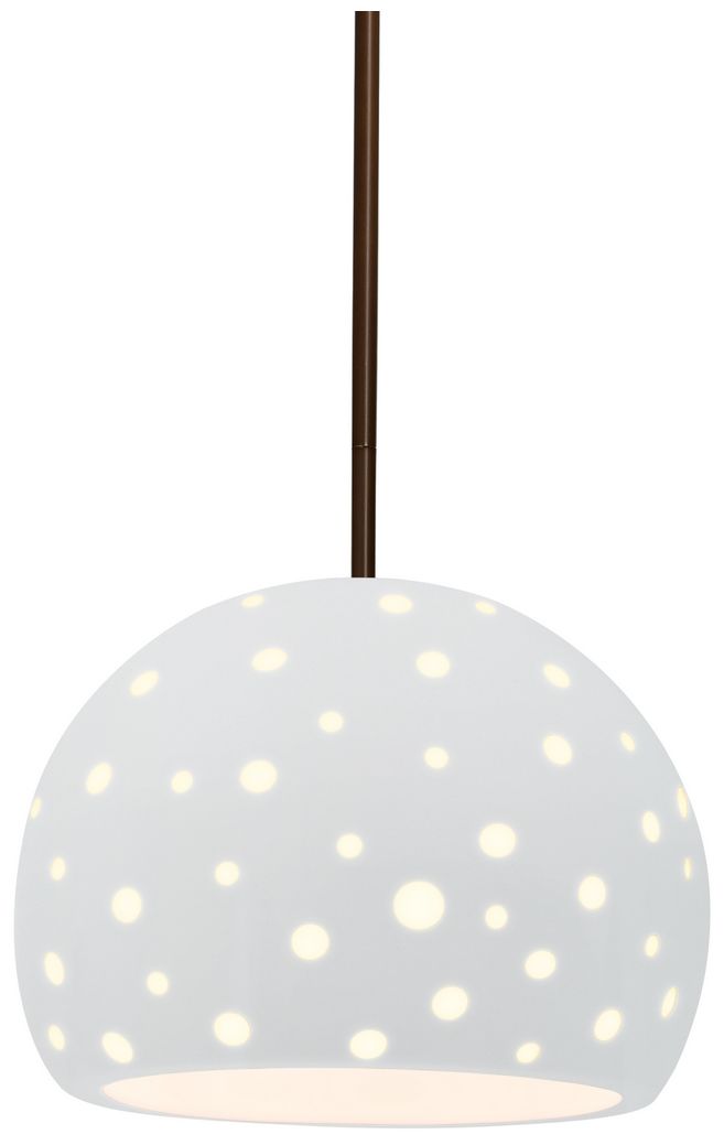 Perforated Globe 7"W Gloss White, Dark Bronze Pendant - White Cord