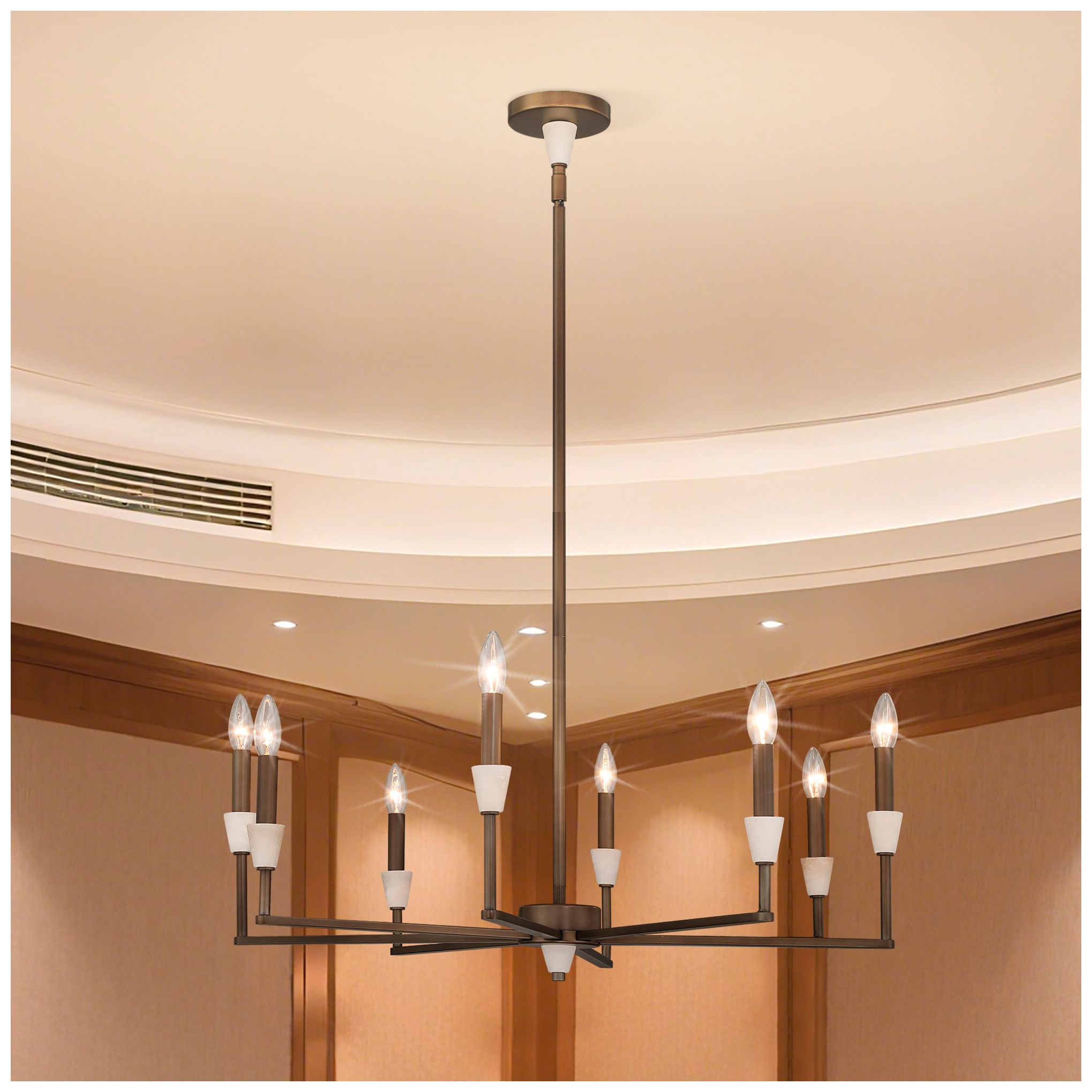 Thesis Montclair 32" 8 Light Forged Bronze and Natural Alabaster Chandelier